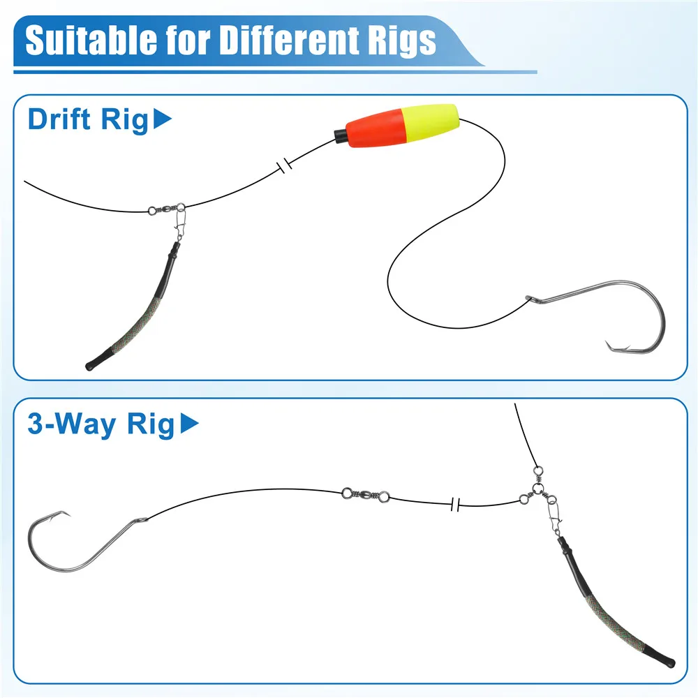 2.Pesos de arrastre de serpiente sonajero, incluye broches extraíbles para que pueda engancharlos en su giro de 3 direcciones o quitar el broche para usarlo con un control deslizante de plomo.El sonajero en cada extremo atrae a los peces de gato en la zona.La forma flexible del lápiz no tiene enganches, por lo que no te colgarás.El extremo a presión es más flotante que la parte inferior, lo que ayuda a mantener la línea alejada de los enganches.