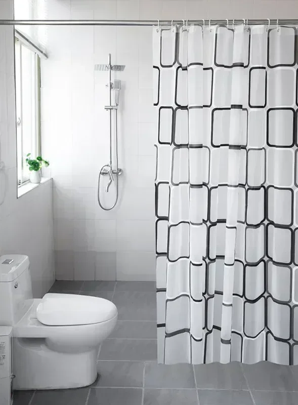 PEVA-cortina de ducha impermeable para baño, cortina de baño con patrón geométrico moderno a cuadros, decoración del hogar de granja