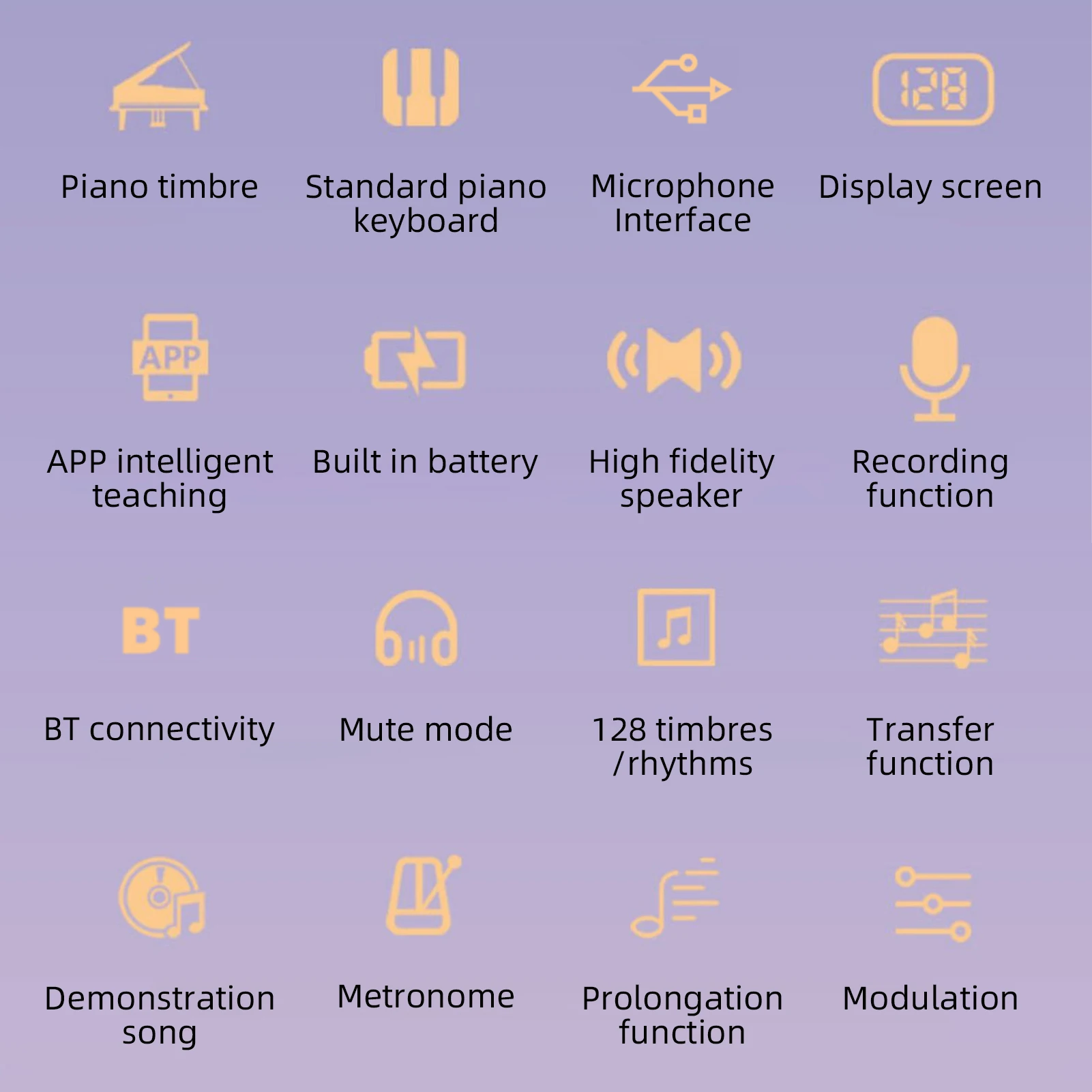 Potentes funciones: el teclado cuenta con un panel de pantalla LCD e activa 128 tonos, 128 ritmos para elegir, 15 canciones de demostración diferentes para que juegues.
