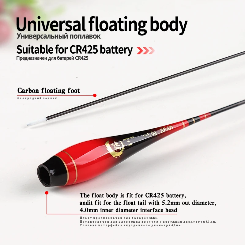 2. El cuerpo del flotador es apto para la batería CR425 y se ajusta a la cola del flotador con un diámetro exterior de 5,2 mm y un cabezal de interfaz de diámetro interior de 4,0 mm.