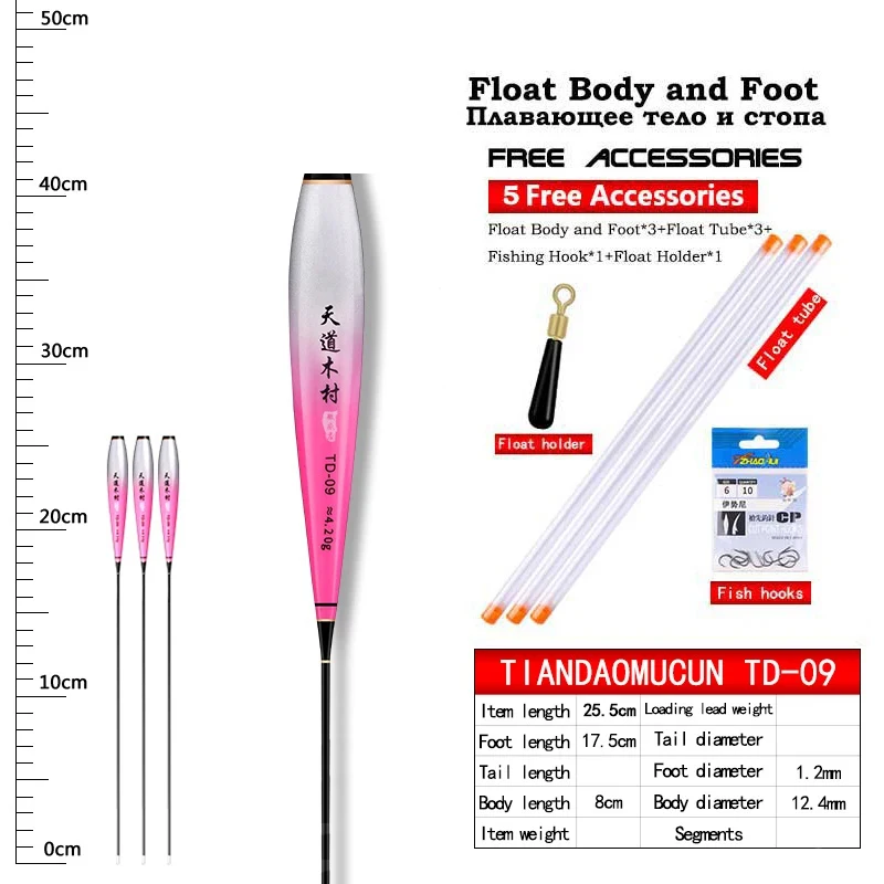 Cuerpos flotantes de 3 piezas + tubos flotantes de 3 piezas + descanso flotador de 3 piezas + 1 bolsa de anzuelos de pesca