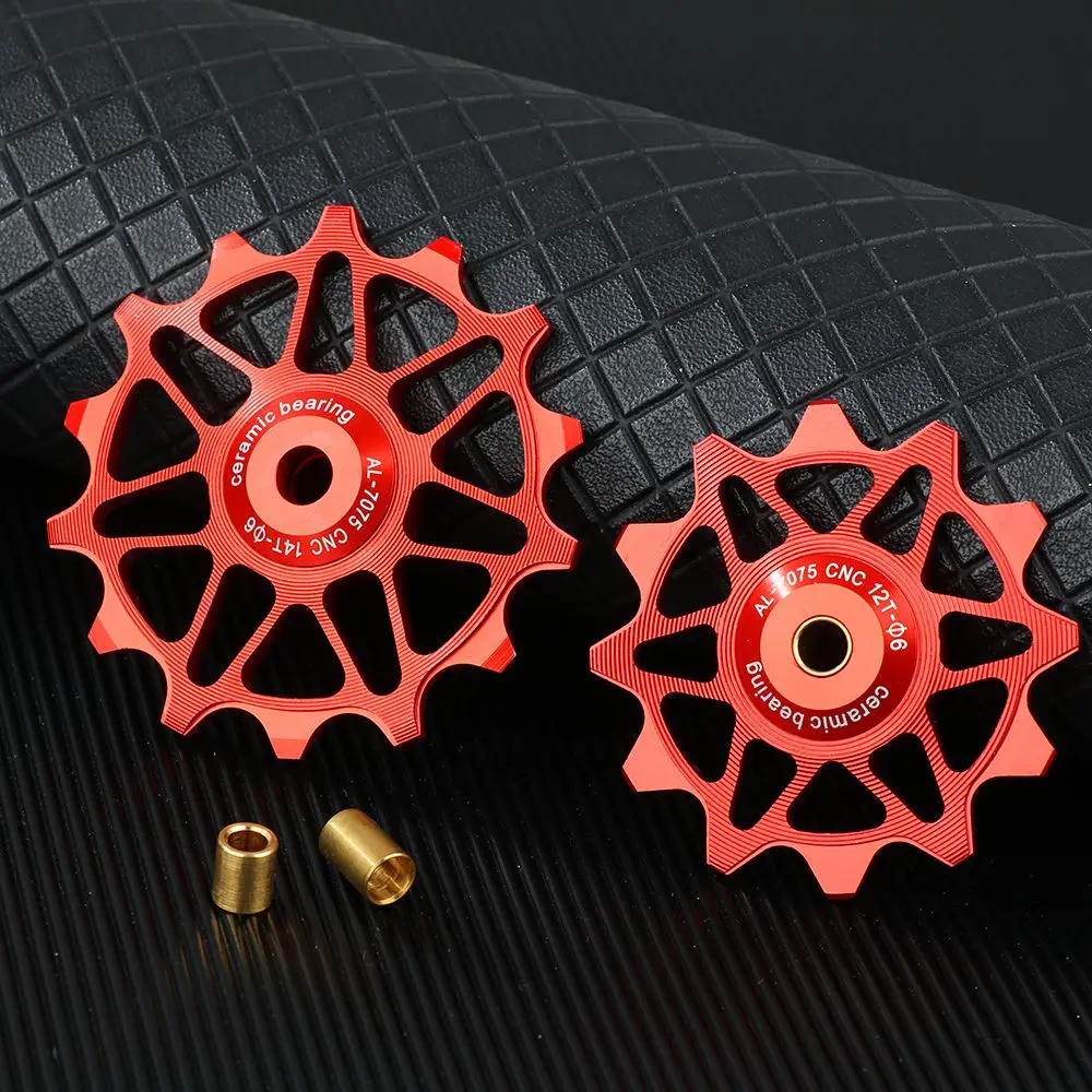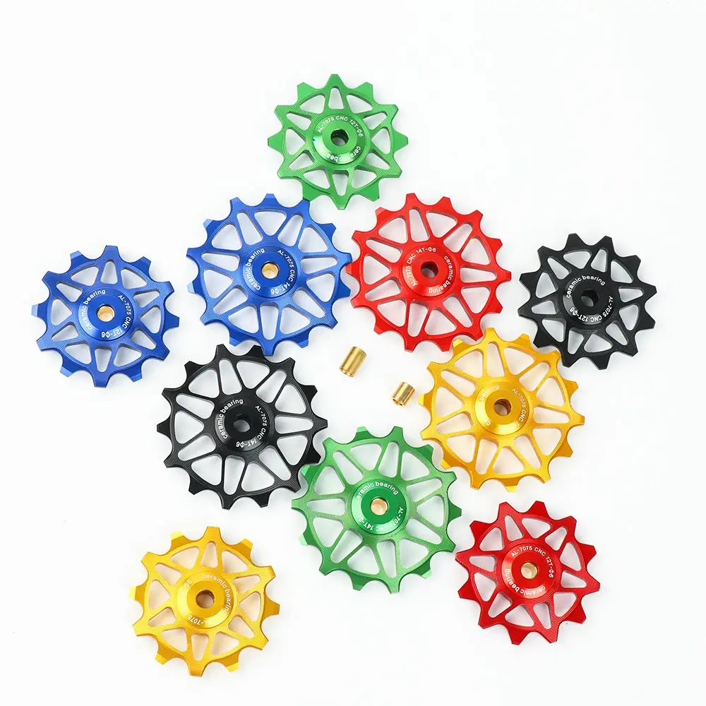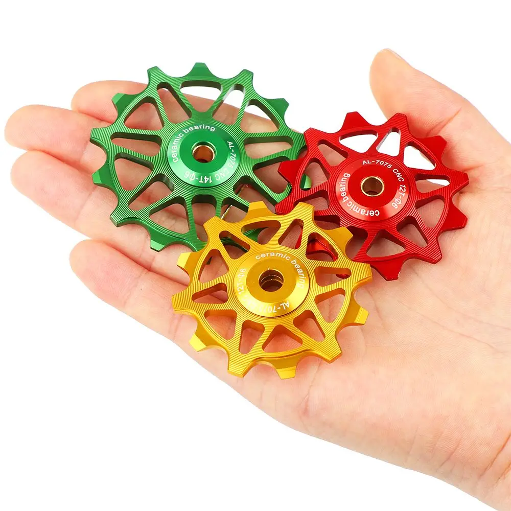Tipo: polea de cambio trasero Material: aleación de aluminio Color: Como muestran las imágenes Tamaño: Como muestran las imágenes Peso: aproximadamente 20g Características: 1. Nuevo y de alta calidad. 2. Accesorios duraderos para bicicleta. El paquete incluye: polea de cambio trasero de dientes anchos y estrechos * 1 piezas; Adaptador de cobre * 2 piezas (4mm,5mm) Notas: El producto puede tener un error de 1-2cm, y el color puede parecer un poco diferente al de la imagen, por favor comprenda.