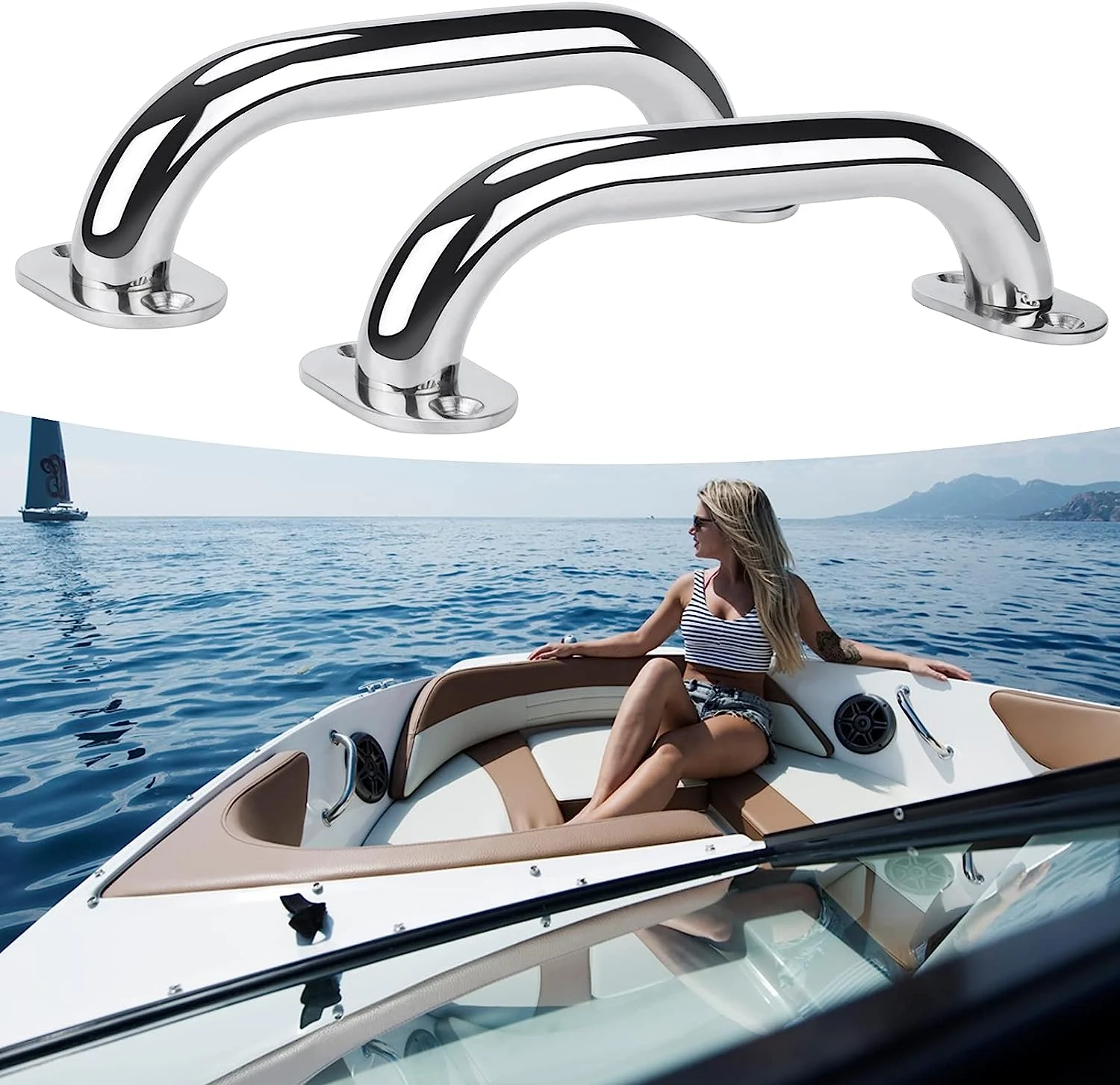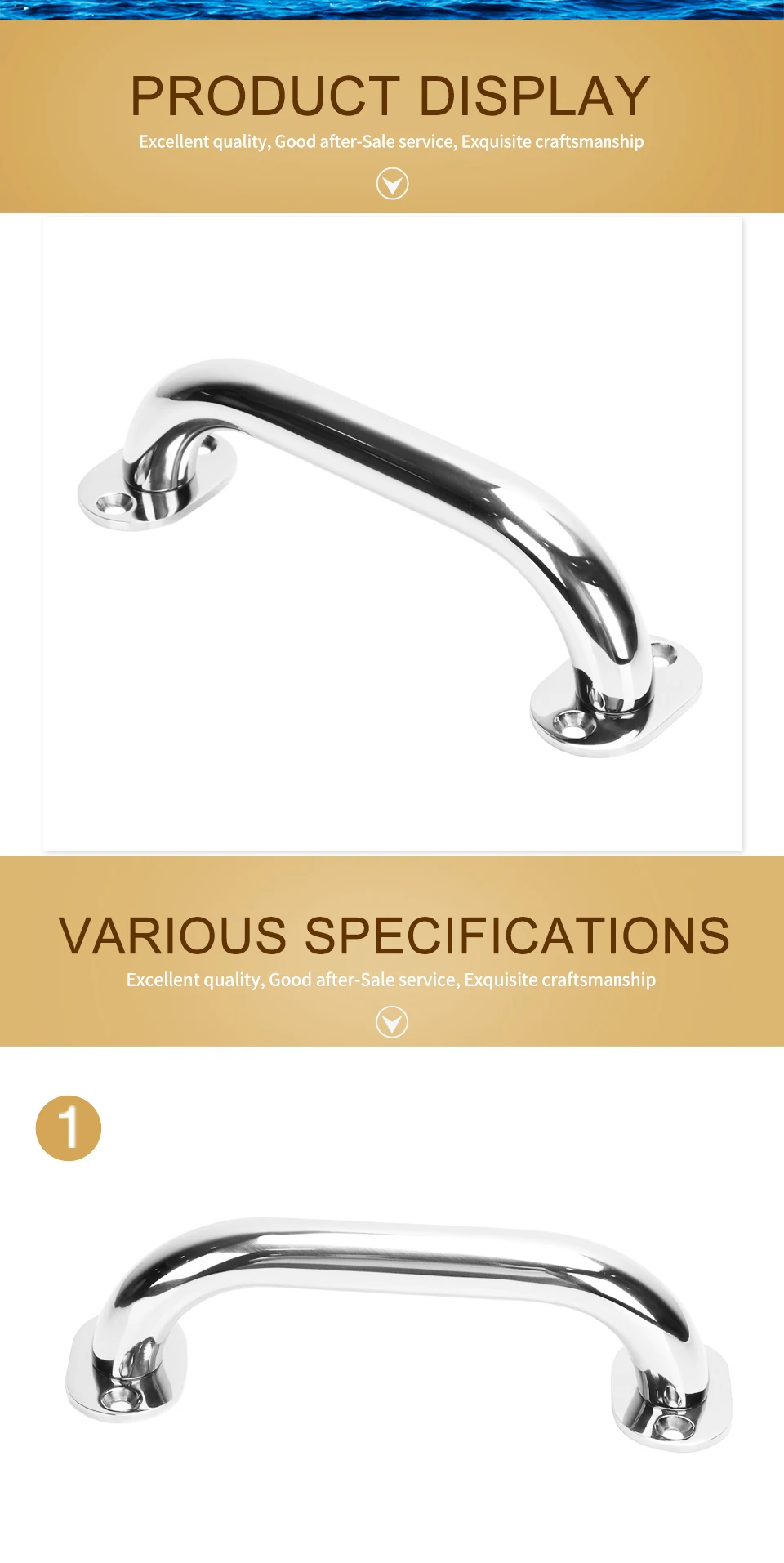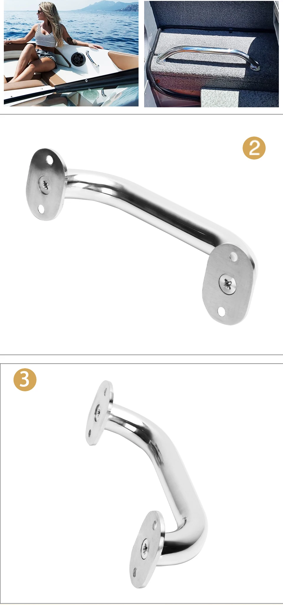 1). Alta calidad hecha de acero inoxidable de grado marino. Superficie pulida brillante. Anticorrosión.