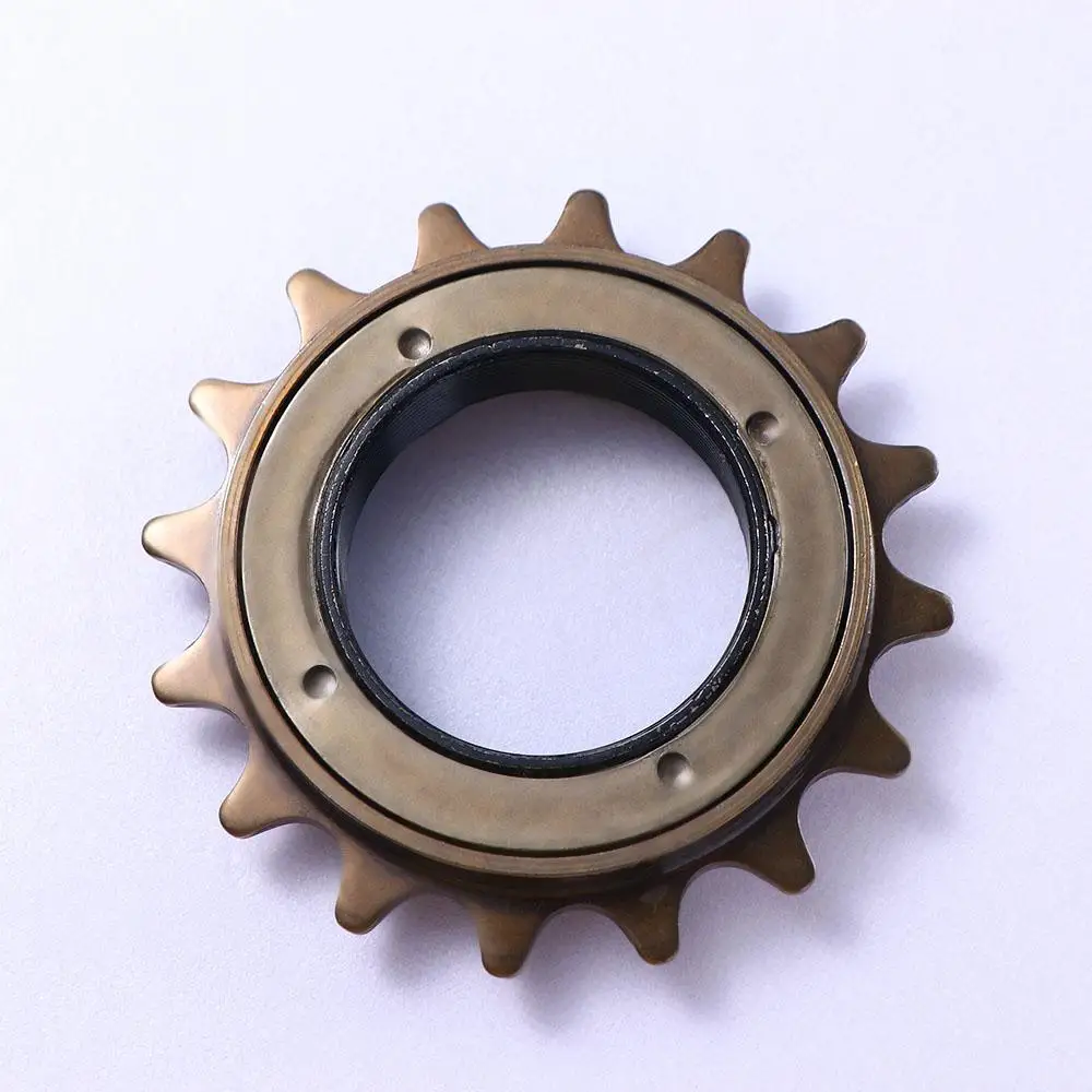 Material: Acero Diámetro de los dientes exteriores: 69mm Diámetro de la rosca interior: 34mm Grosor: 15mm El paquete incluye: 1 pieza de rueda libre de velocidad única Descripción:-Hecho principalmente de acero duradero. -Rueda libre de bicicleta de una sola velocidad, diseño de 16 dientes. -Adecuado para 1/2 "x 1/8".