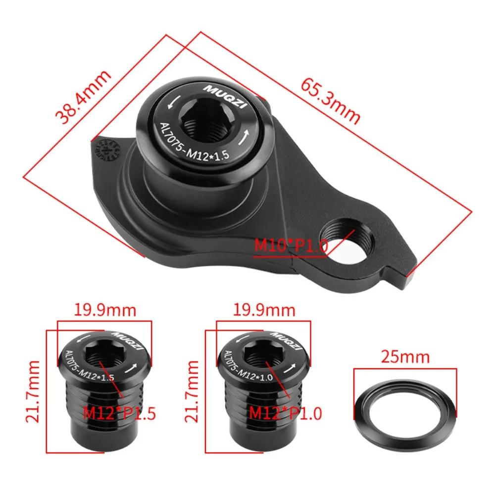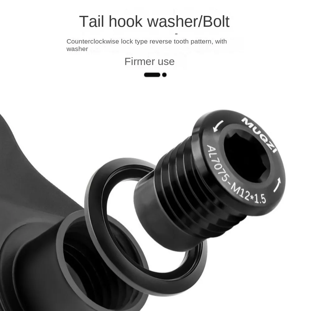 Nombre del producto: Gancho de cola UDH material: aleación de aluminio + plástico tamaño: 38,4x65,3mm(1.51x2.57in) color: negro peso neto: 26g peso bruto: 35g especificación: m12 * 1,0/M12 * 1,5 Tamaño del embalaje: 13*8,5*5cm (5,12*3,35*1.97in) lista de envío: 1PC * perno, 1PC * arandela, 1 ud. * gancho de cola