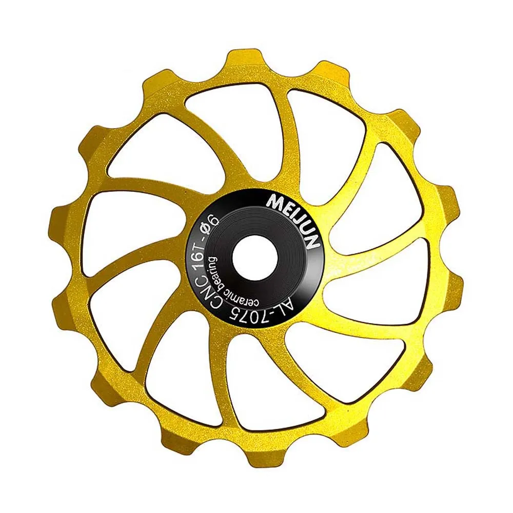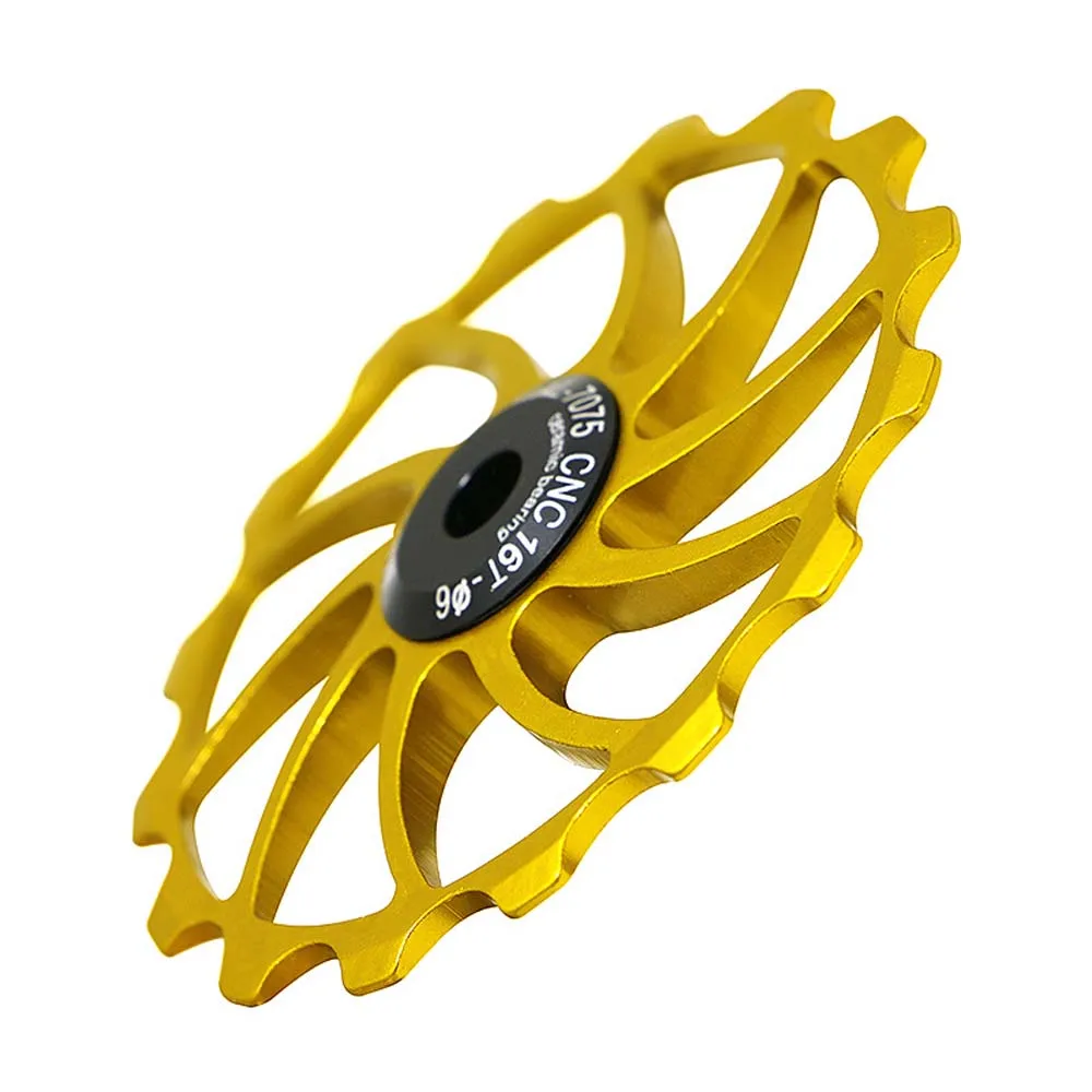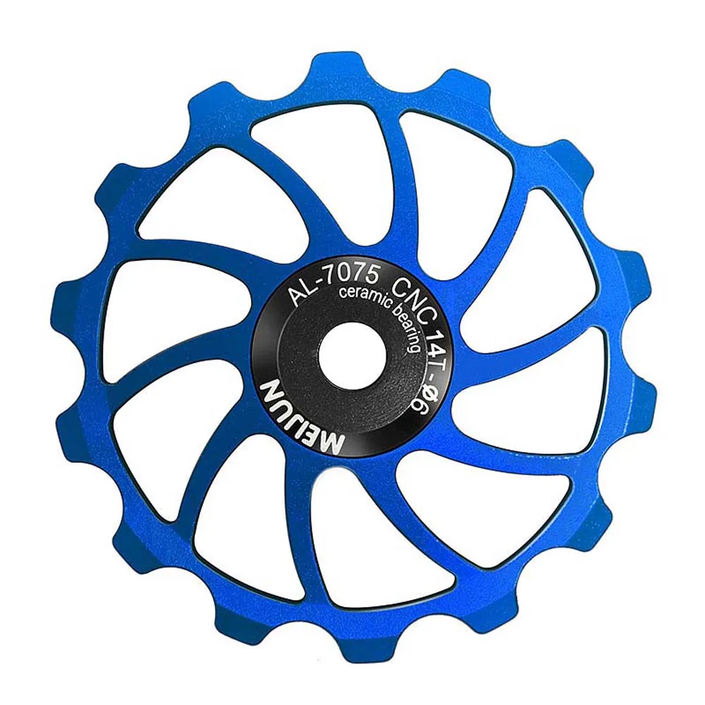 Item type: Bike Rear Derailleur Pulley Material: aluminium alloy Color: As Picture Optional type: 14T 15T 16T Specification: applicable to 4/5/6MM shaft guide screw Package Contents: 1 pcs Bike Rear Derailleur Pulley Size: 14T diameter is about 55mm, 15T diameter is about 57mm,16T diameter is about 63mm