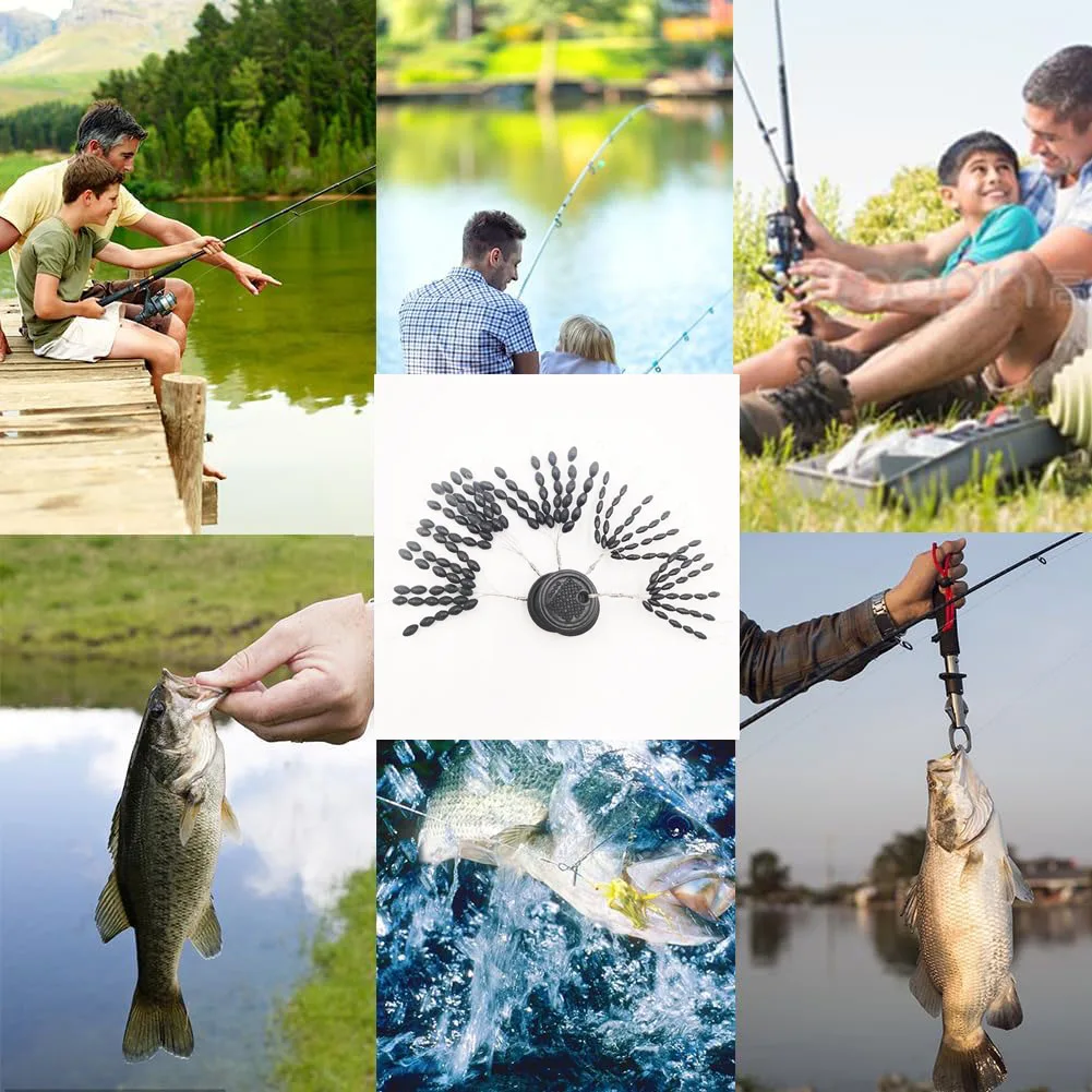 300-Aparejos de pesca de frijol para pesca, carpa de mar, pesca con mosca, tapón ovalado negro, flotador de pesca, Bobber, Grupo S, M, L, XL