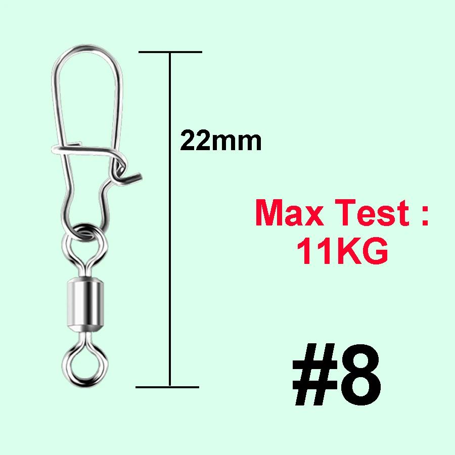 • Múltiples tamaños: con tamaños que van desde 1/0 # a 8 #, estos pines conectores de pesca pueden acomodar una variedad de tamaños de línea de pesca.