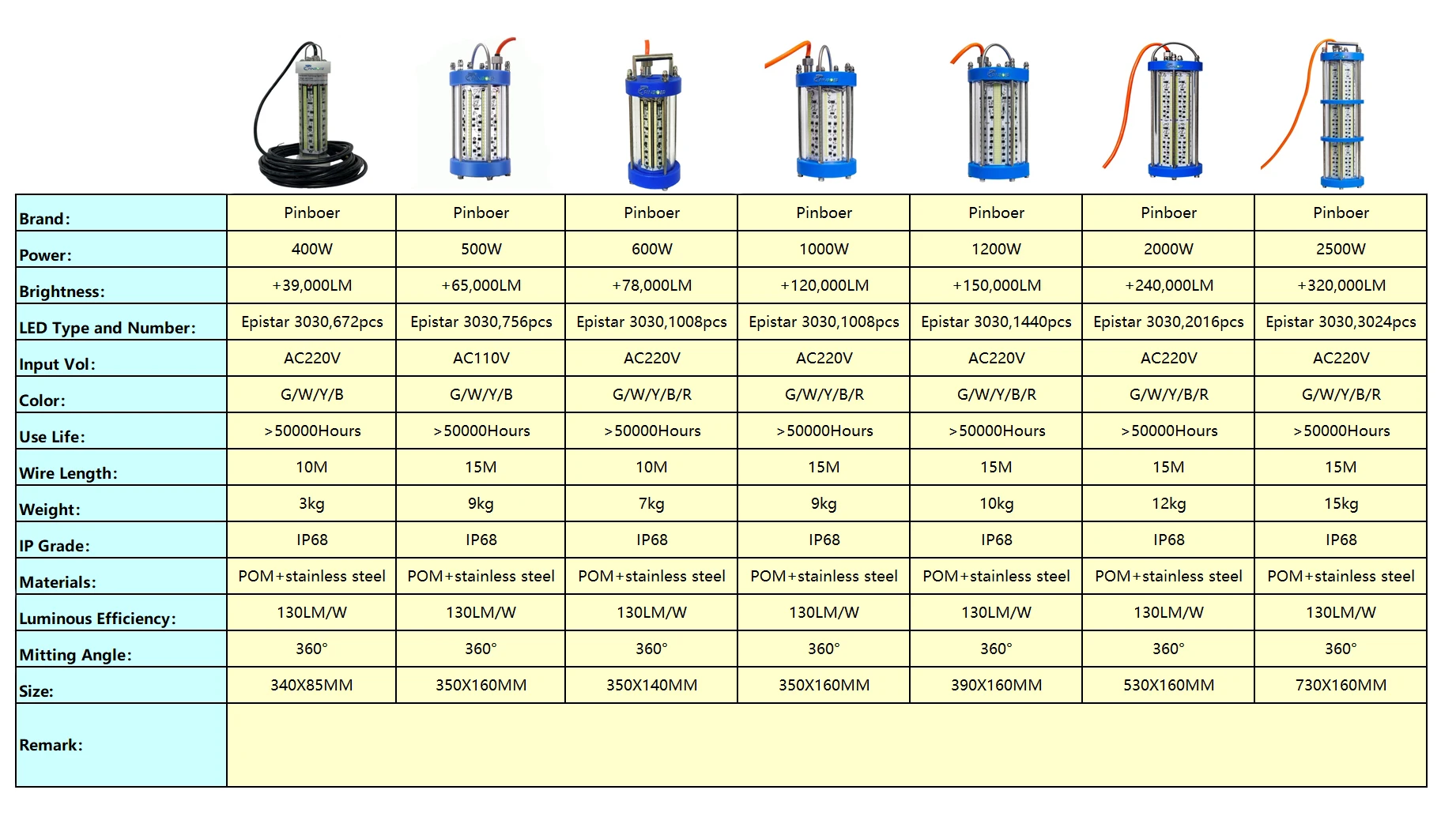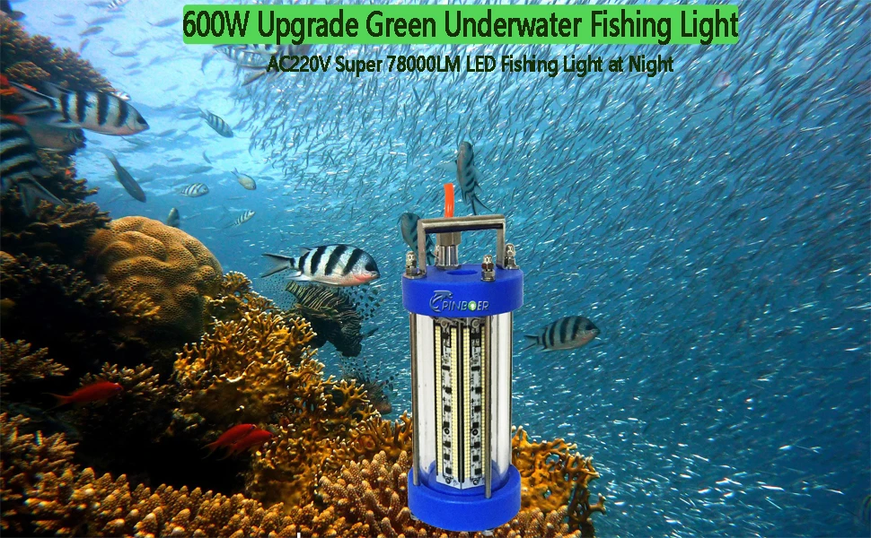 Pinboer Fishing Light Underwater AC220V 600W 78000LM Led Submersible Crappie Night Boat Ice Fishing Light IP68 Fish Finder Attractants in Freshwater and Saltwater with 10M cord