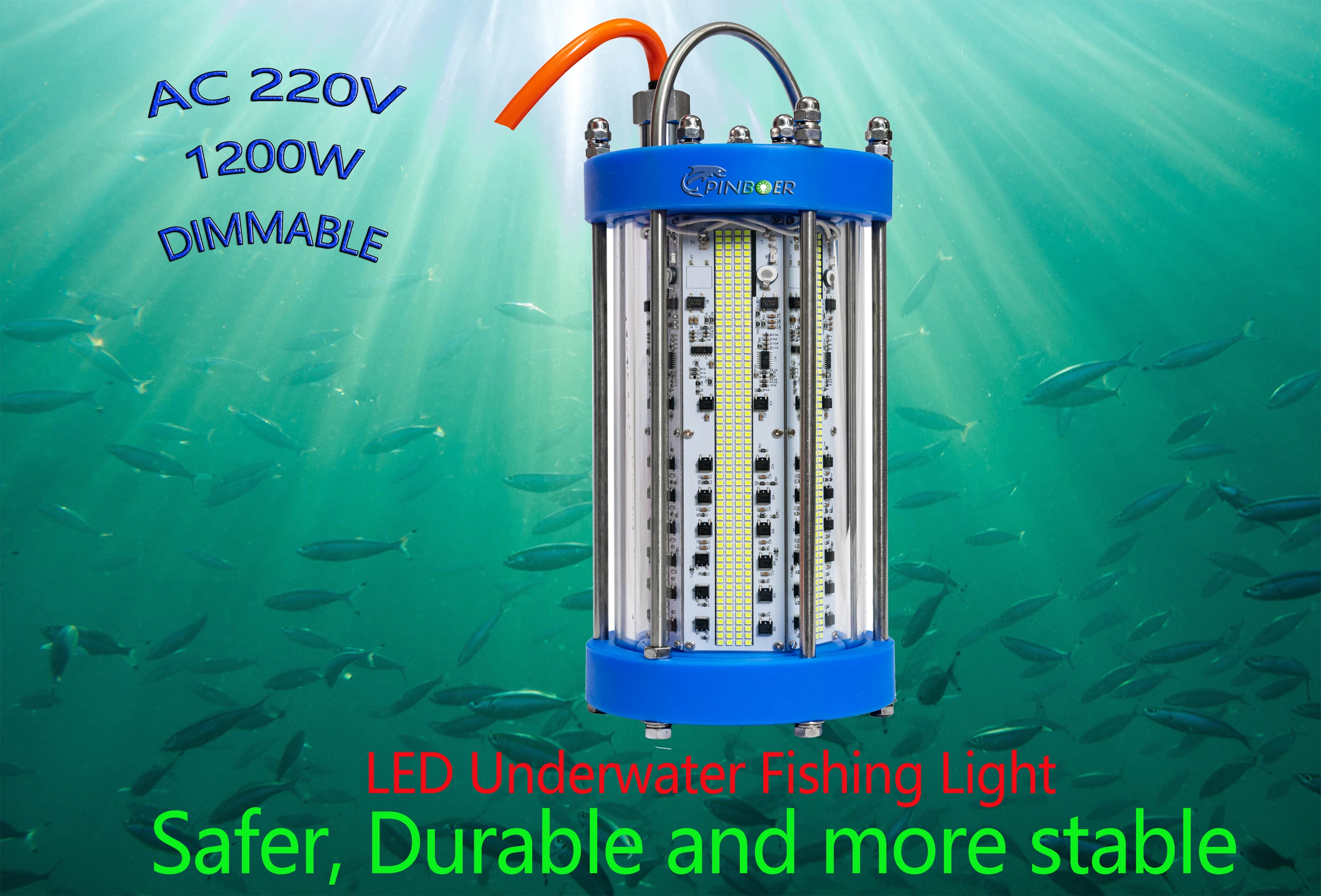 Pinboer Luz de pesca subacuática AC220V 1200W 150000LM Led sumergible Crappie Barco de noche Luz de pesca en hielo IP68 buscador de peces atrayentes en agua dulce y agua salada con cable de 15M