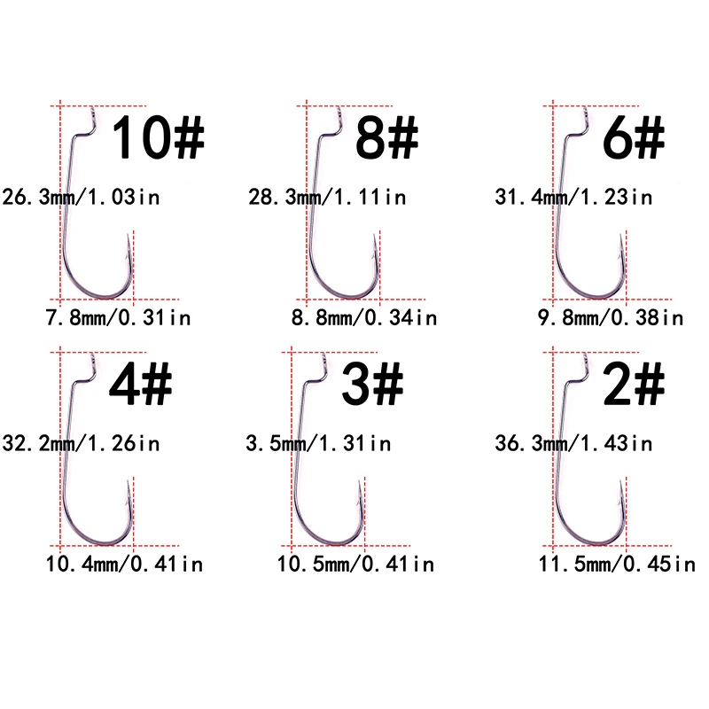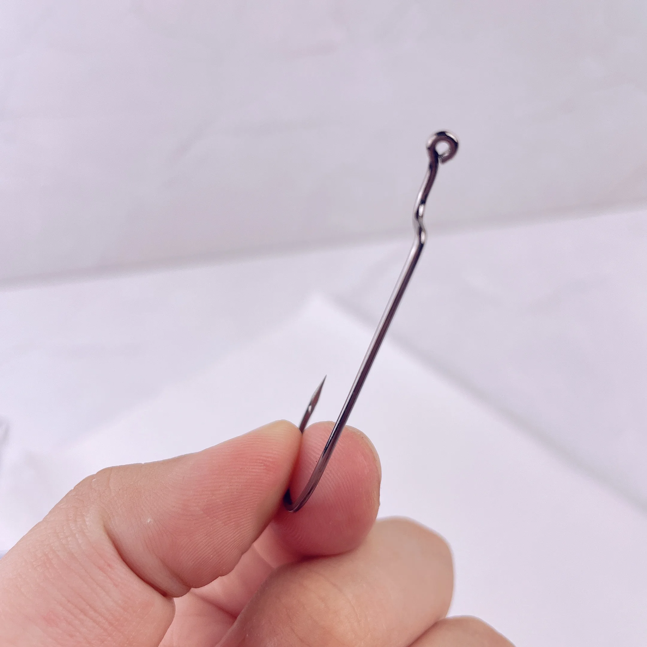 Pingda-gancho de manivela de estanque de depósito de acero al carbono, caña fina de níquel negro, cebo de pesca de Texas, gancho pequeño