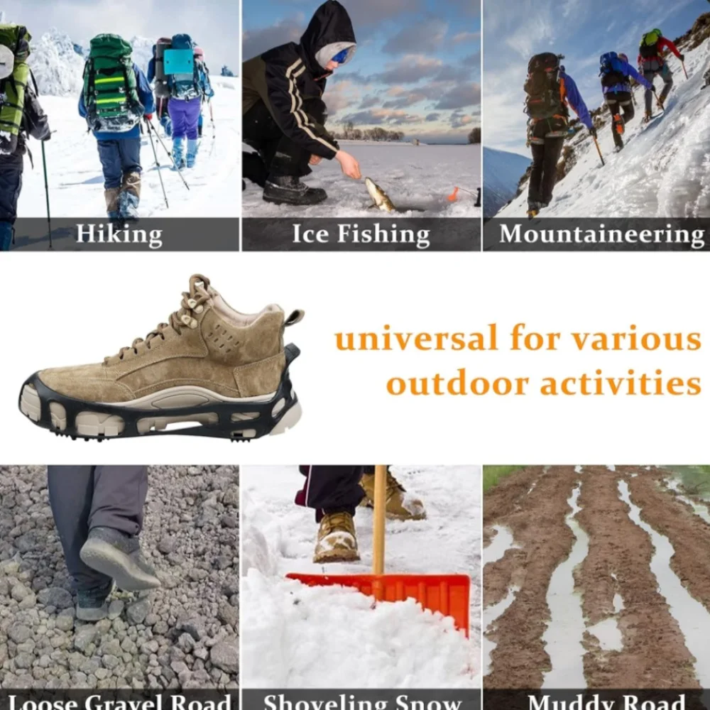 4. Los tacos de tracción para caminar de 24 tachuelas son ideales para actividades de invierno o incluso para un uso diario simple para ayudar a prevenir resbalones, tropiezos o caídas en la nieve o el hielo.