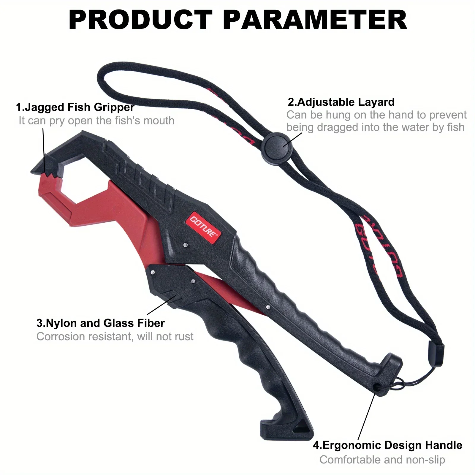 Pinza de pescado flotante de 24cm, controlador de labio de pescado de nailon portátil, herramienta de agarre de pescado con cordón para agua dulce y salada