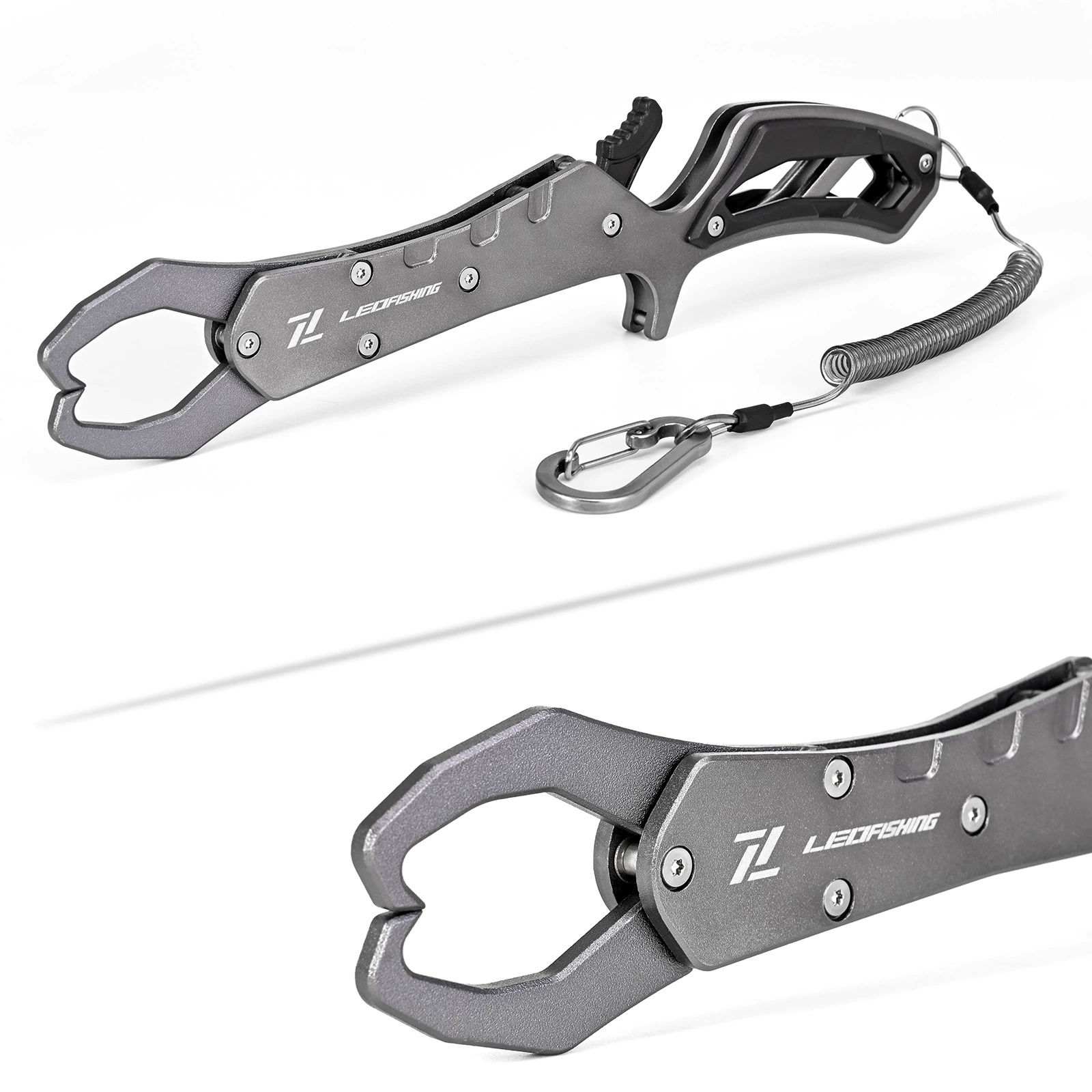 Pinzas de Control de peces de aleación de aluminio, Señuelos de Pesca con agarre, cuerda faltante adjunta, hebilla colgante, accesorios de herramientas de pesca