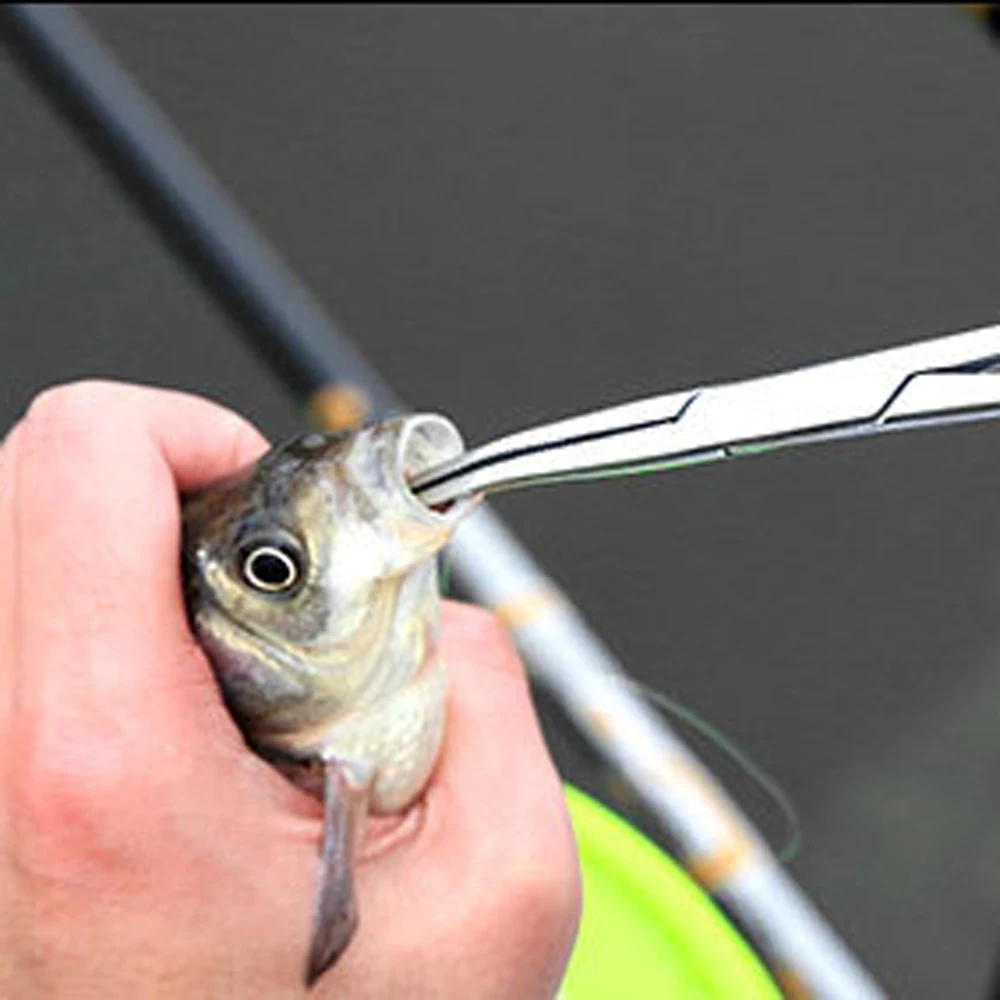 4. Para: pesca con mosca bloqueo codo tijeras fórceps hemostático, removedor de anzuelos de pesca, dispositivo de desacoplamiento.
