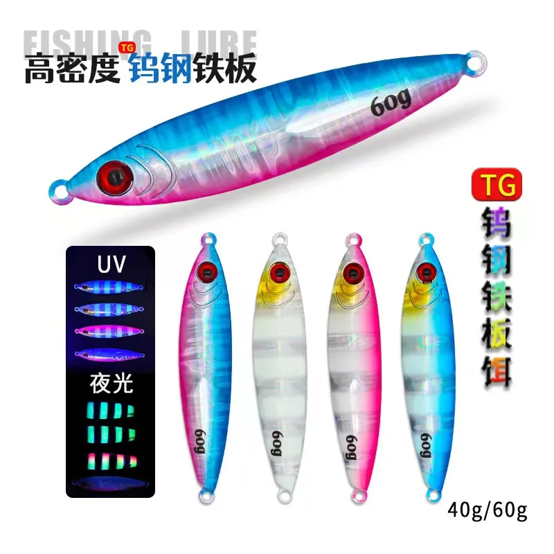 Placa de hierro de caballo de acero de tungsteno, cebo Luya, doble gancho, refuerzo, tres ganchos, lanzamiento de orilla, lentejuelas, placa de hierro, cebo desnudo Le