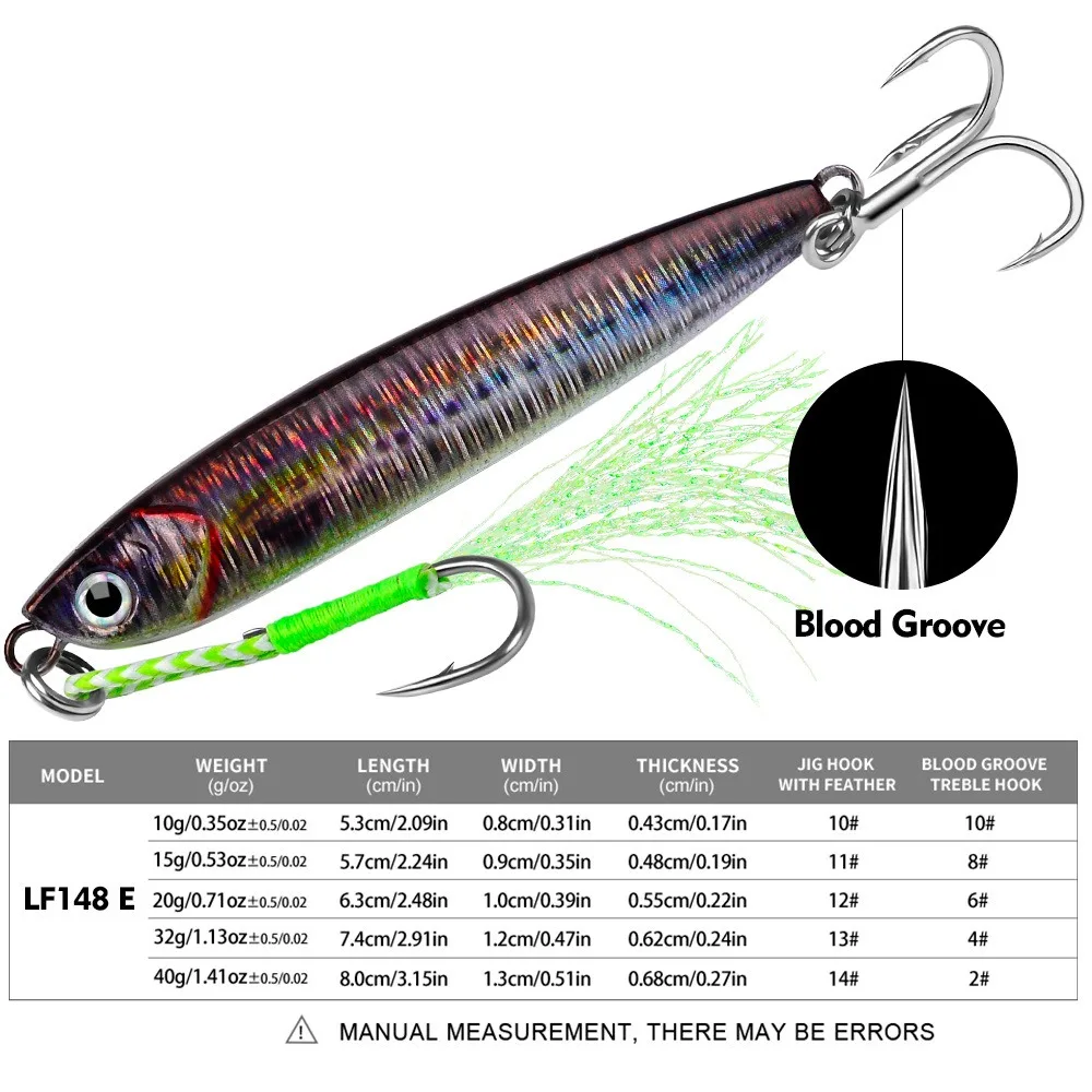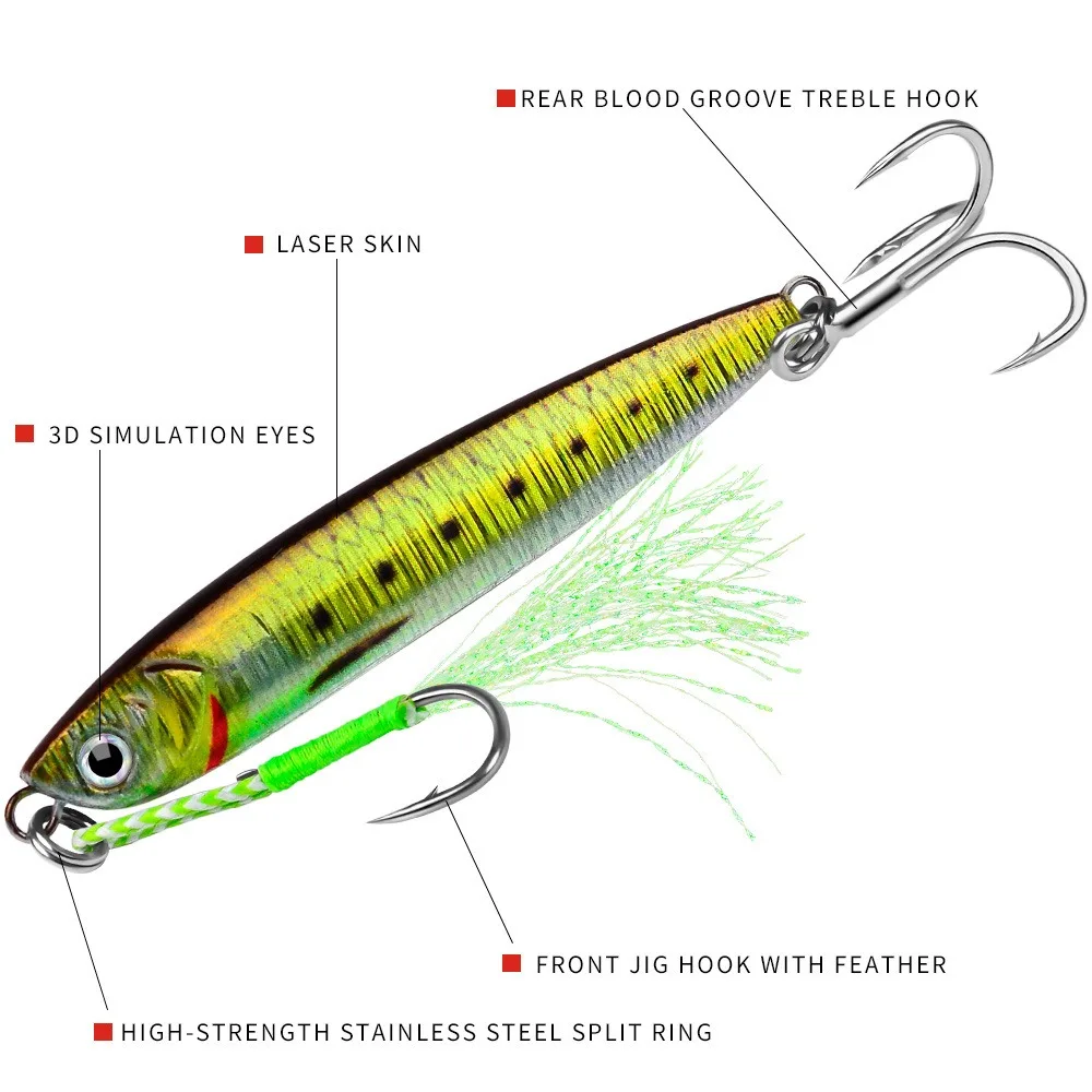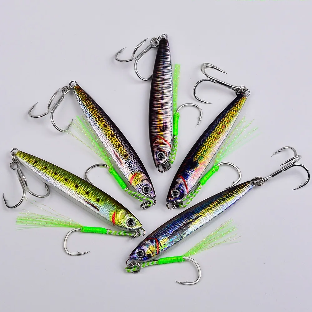 Placa de hierro para peces de plomo, cebo largo fundido con purpurina, 10g/15g/32g/40g, 7,8 cm, placa de hierro que se hunde, cebo duro artificial, aparejos de jigging láser