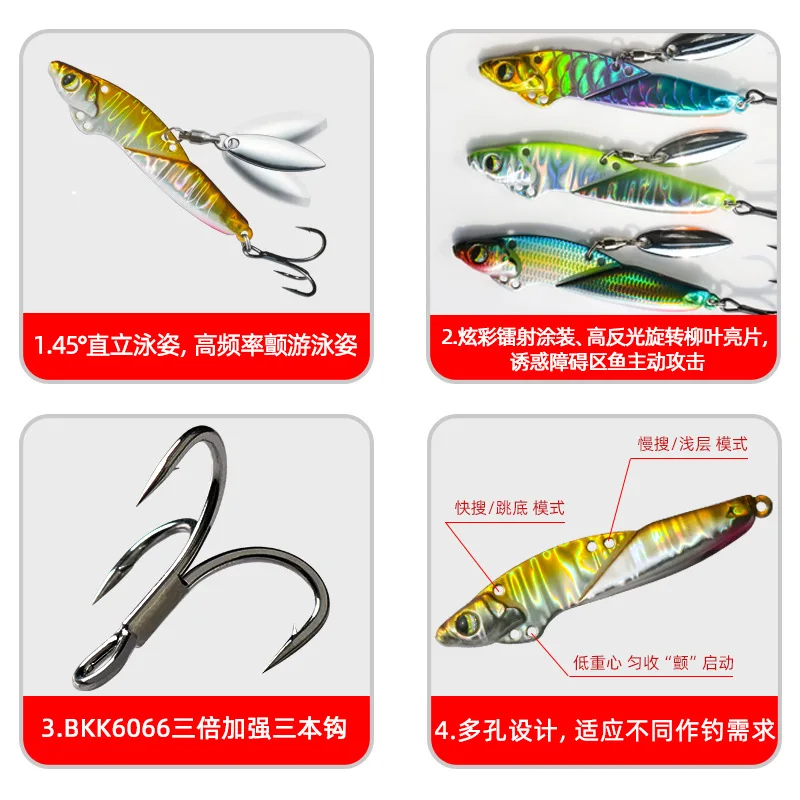 Placa de hierro recubierta de plomo, cebo de hierro fundido de largo alcance, cebo falso, lentejuelas giratorias temblorosas, cebo biomimético de lubina con boca cruzada