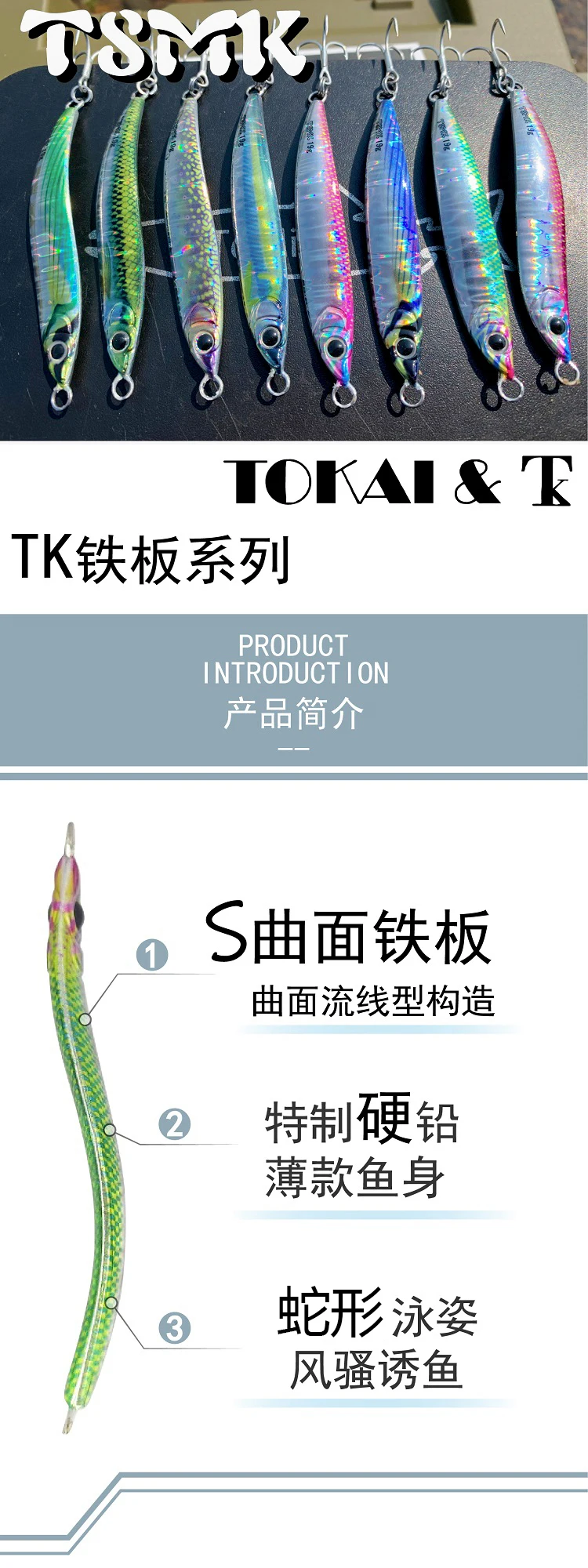 Placa de hierro TK curvada en forma de S, cebo falso importado de Japón, 12G, 15G, 30g, biónico, rizador de caballa española