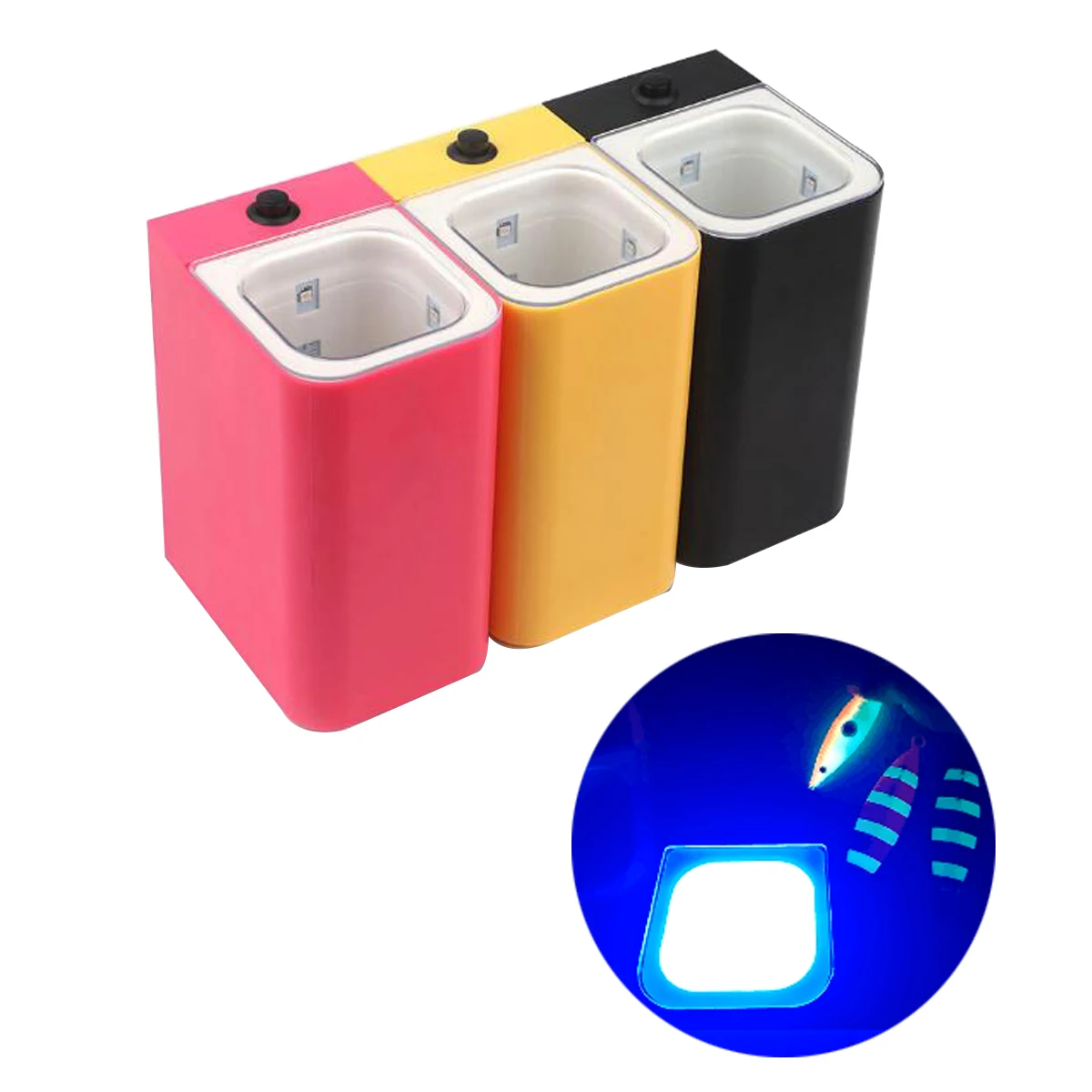 UV más ligero acumulador jig cebo suave LED flash resplandor en oscuro operado pesca calamar cargador de luz para la pesca de mar