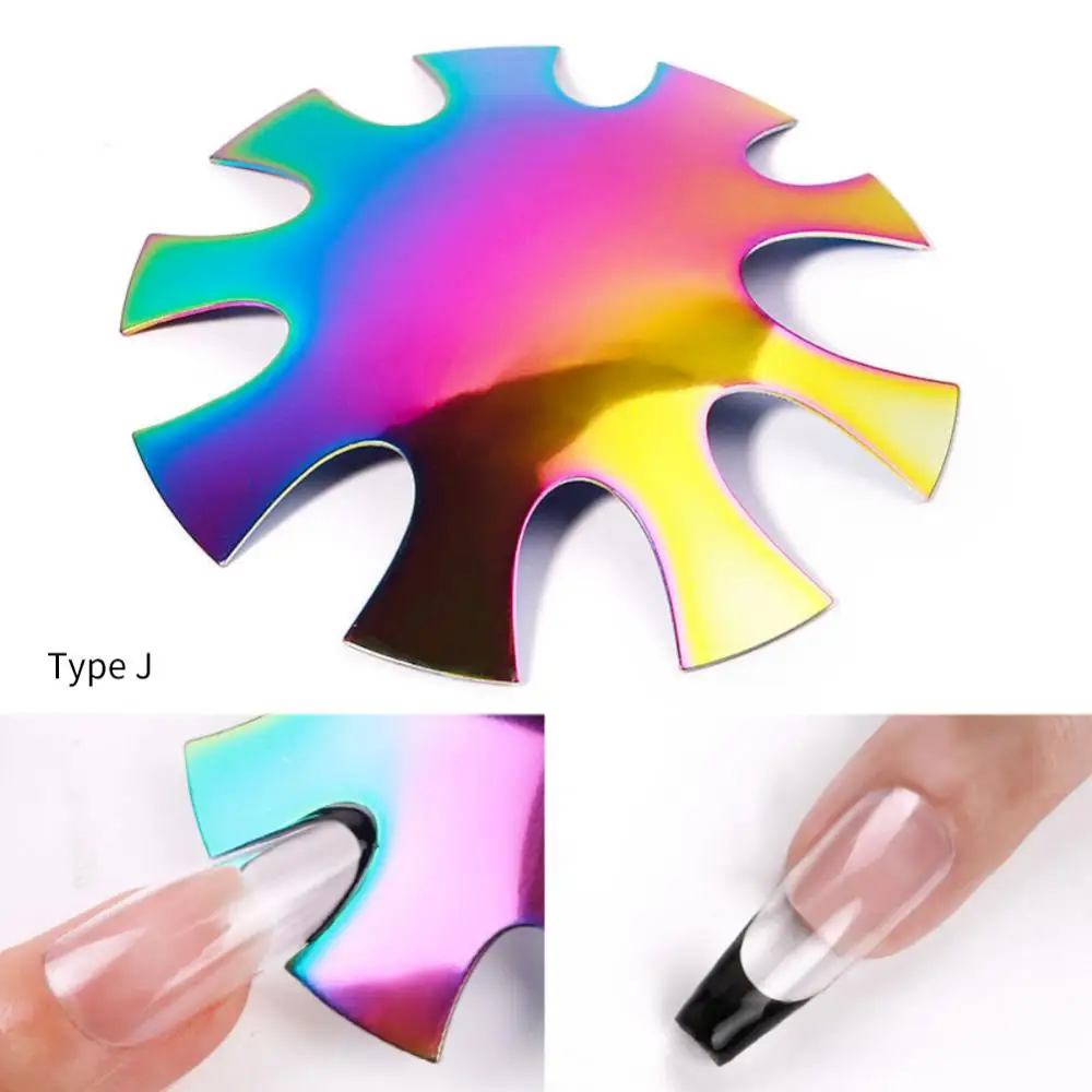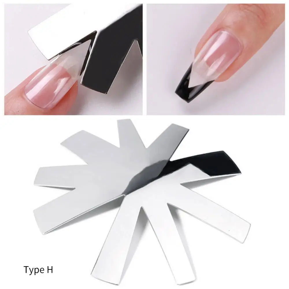 Plantilla para decoración de uñas, modelo de plástico para manicura francesa, modelo de placa de acero, plantilla de acero inoxidable para uñas de cristal, placas para pintar uñas