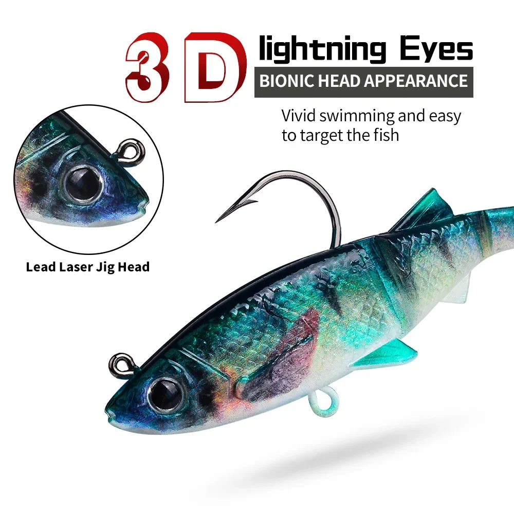 Plantilla de cabeza de plomo con cebo falso en forma de pez único, señuelo suave realista para pescar, paquete de cebo de arrastre de peces de plomo, exclusivo global