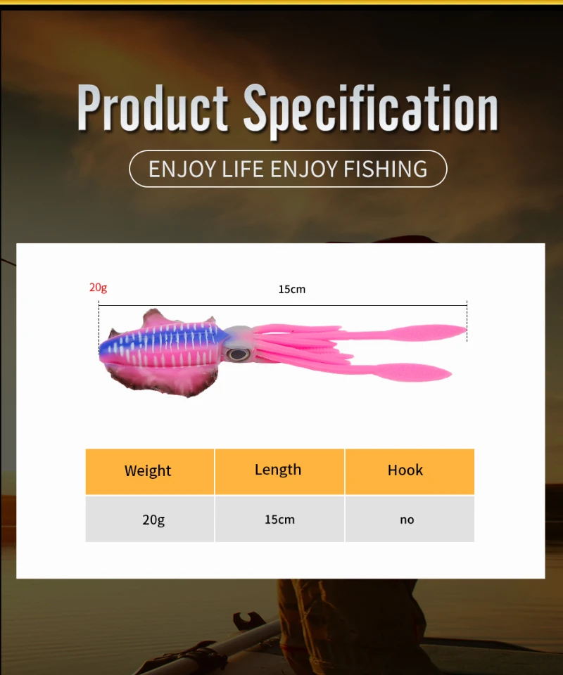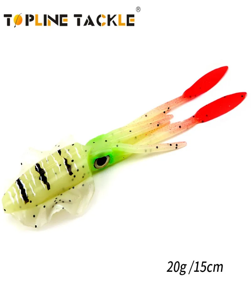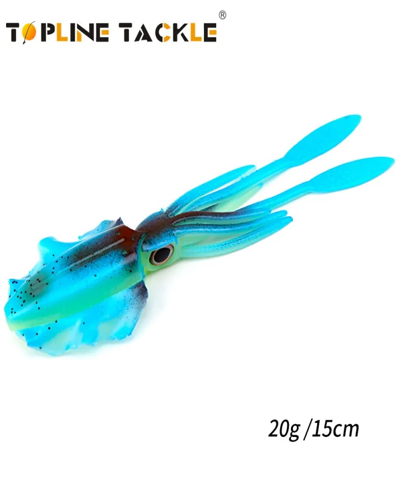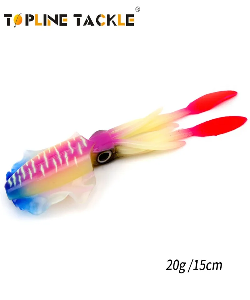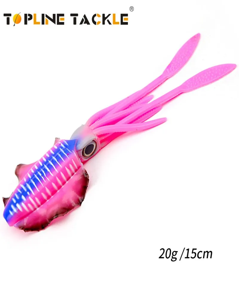 Señuelos de Pesca de Agua Salada UV Luminosos de Goma Artificial Suave de Silicona, Cebo Wobbler, Plantilla de Calamar, 9 Colores, 20gCaracterísticas:1. Diseñado para ser un cebo de pesca de imitación de calamar ultra realista.