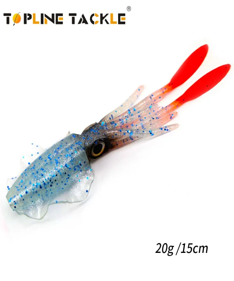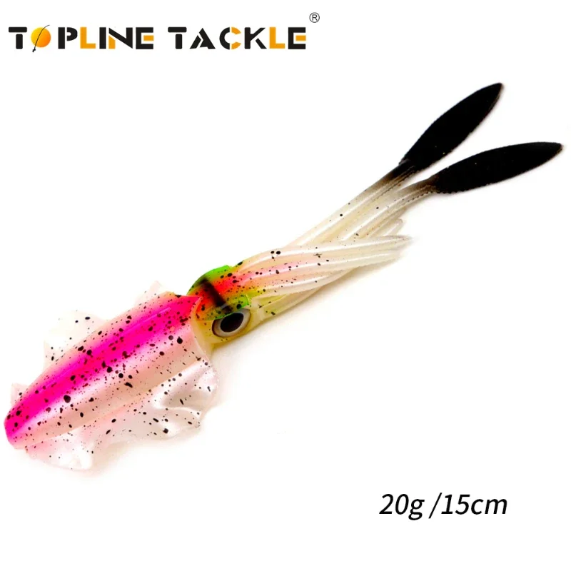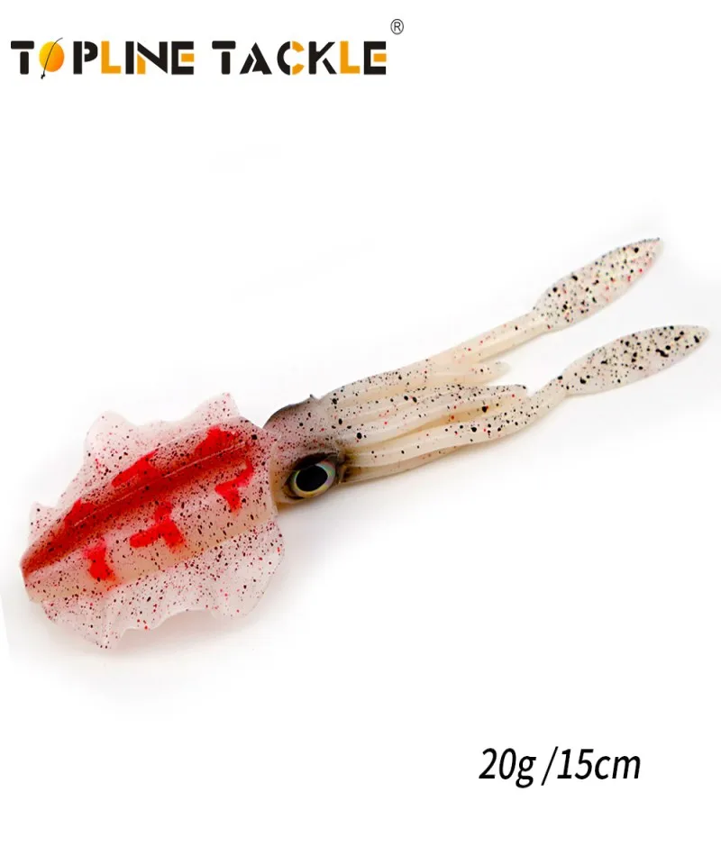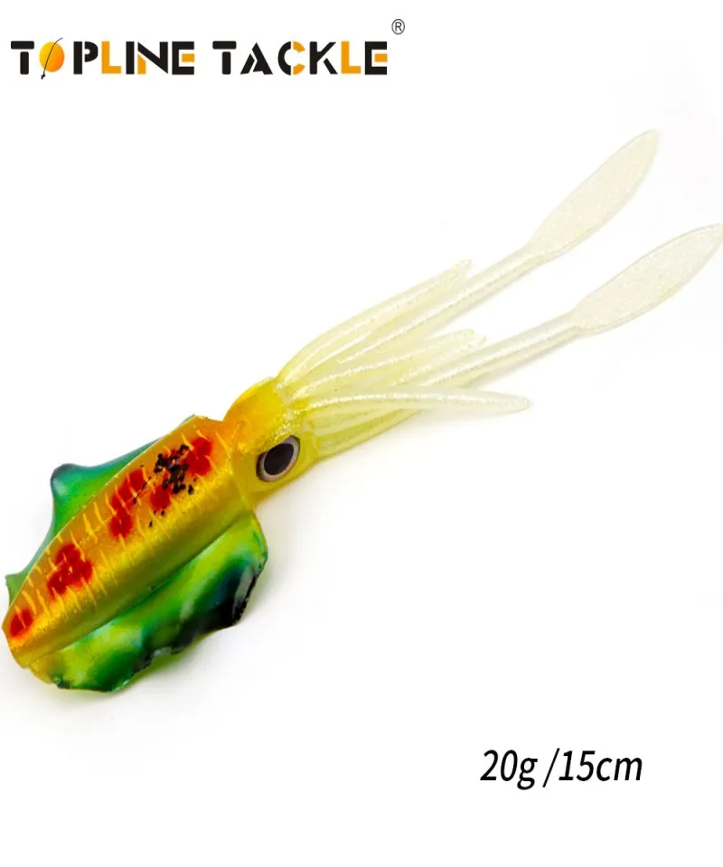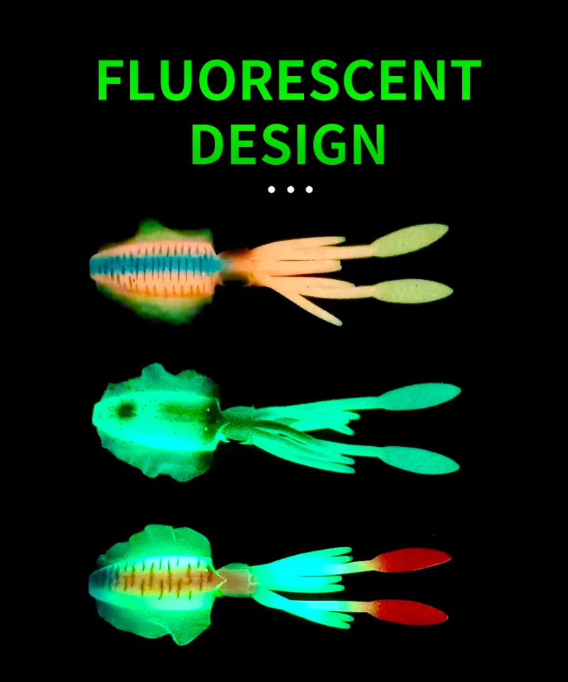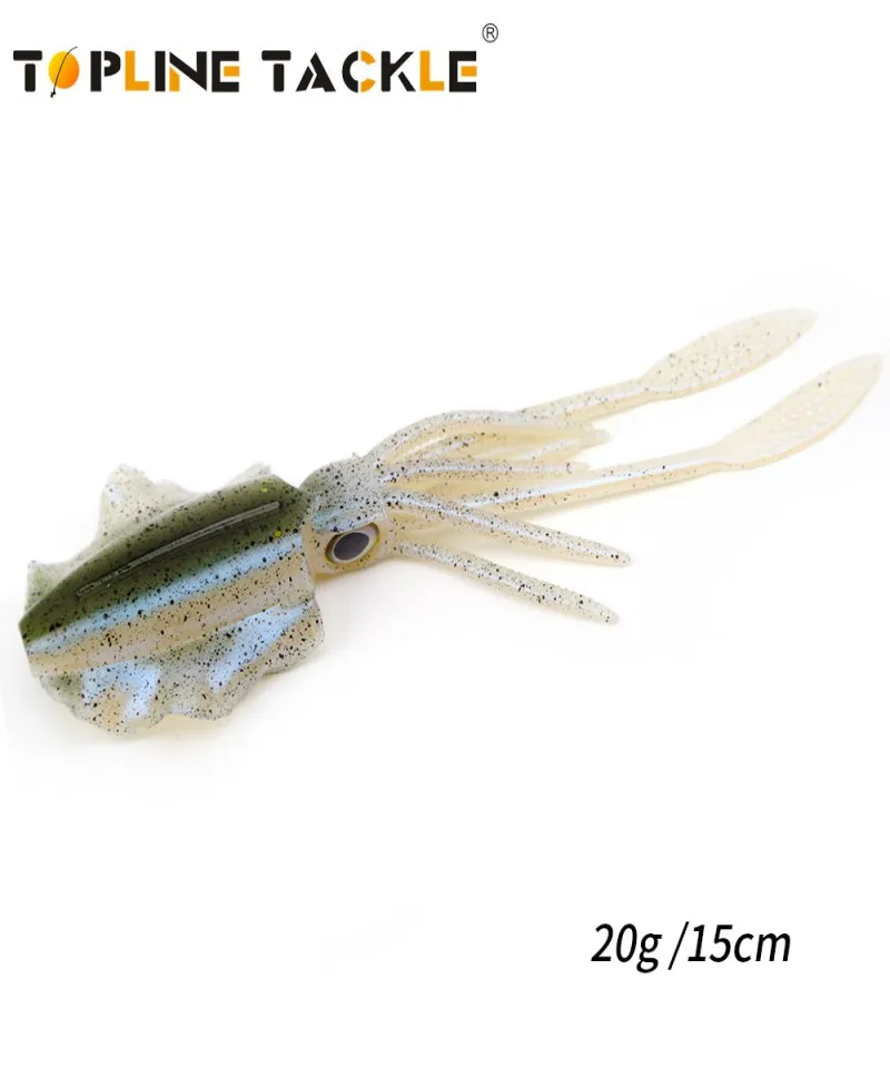 Señuelos de Pesca de Agua Salada UV Luminosos de Goma Artificial Suave de Silicona, Cebo Wobbler, Plantilla de Calamar, 9 Colores, 20gCaracterísticas:1. Diseñado para ser un cebo de pesca de imitación de calamar ultra realista.