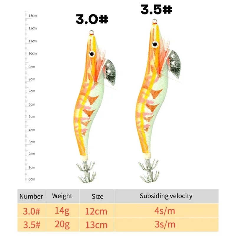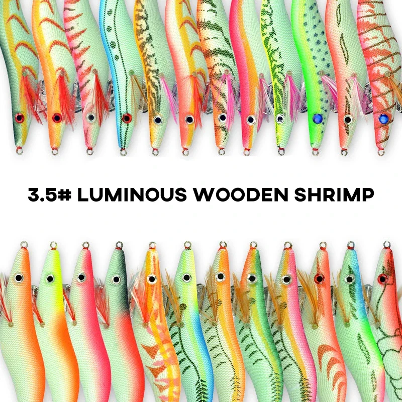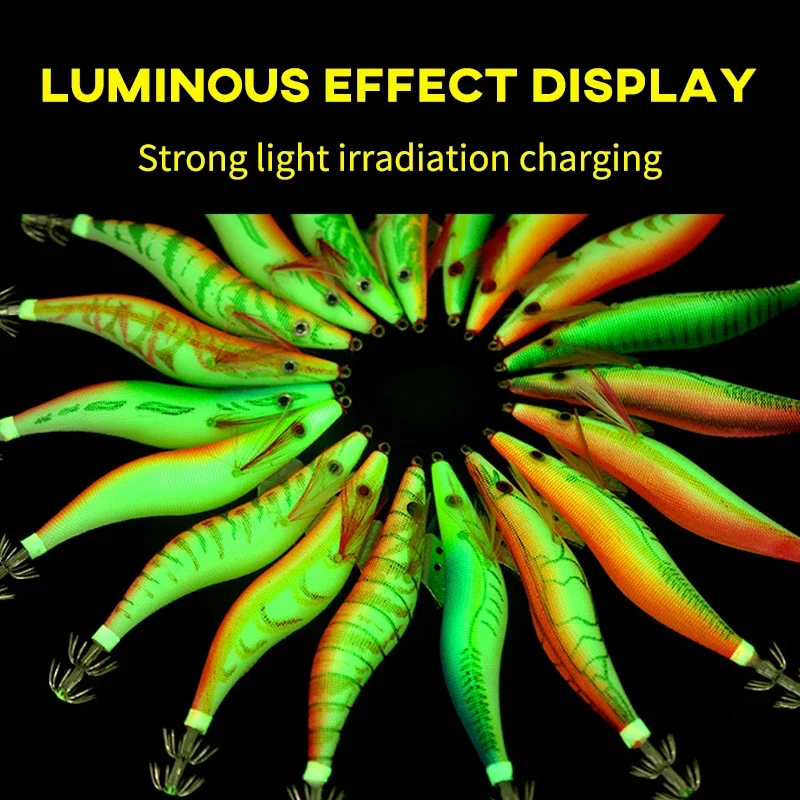 Plantilla de calamar Artificial, señuelo luminoso de madera para pesca de camarones, noctilucente, sepia, pulpo, 3,0 #3,5