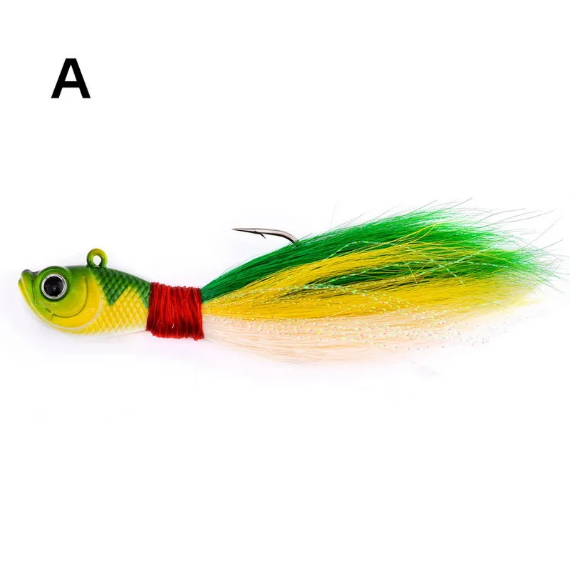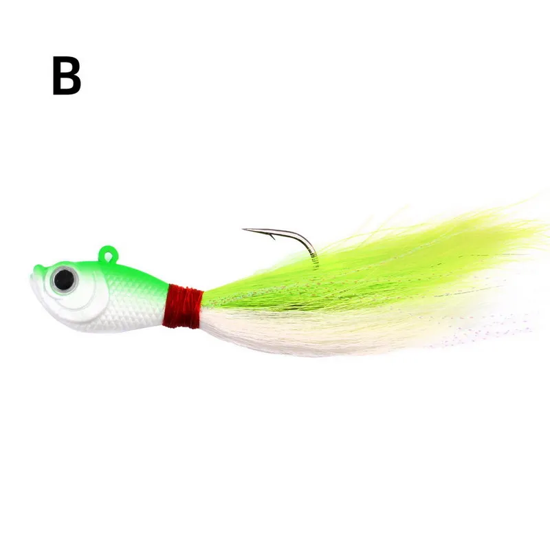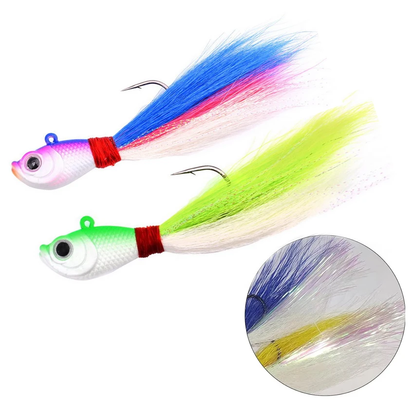 HERMOSO APARIENCIA: Pelo de cola de oso avanzado y colorido atado a mano, hilos reflectantes instantáneos, brillo de cristal en la cabeza de plomo imitan las escamas de los peces cebo y mejoran la visibilidad, haciendo que la plantilla sea más visible para los peces, especialmente en condiciones de poca luz o en aguas turbias.
