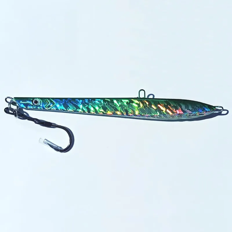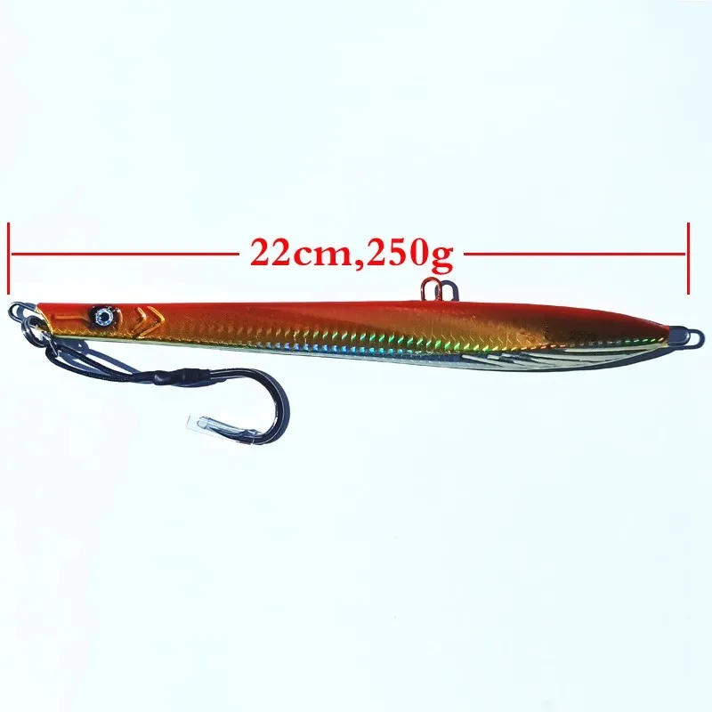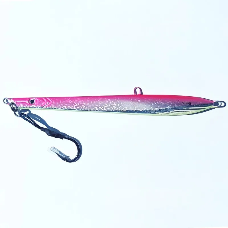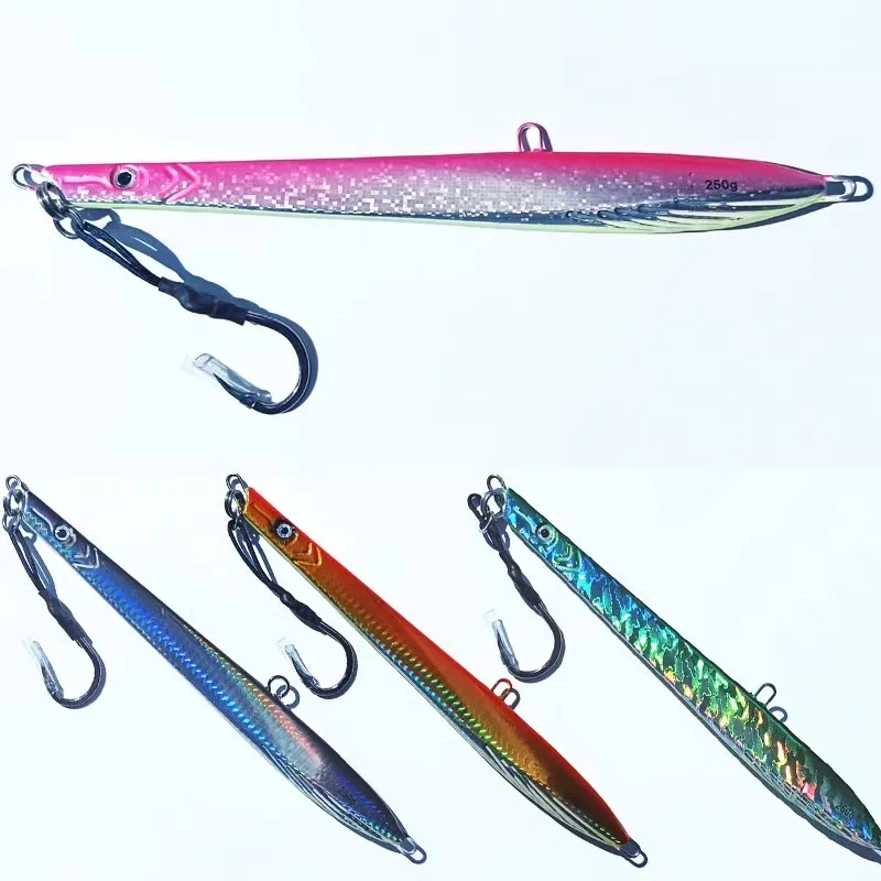 Plantilla de cuchillo luminosa brillante, señuelo de jigging con anzuelo de asistencia, plantilla rápida, lubina, caballa, atún, Juego de pesca en barco, 250g