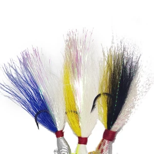 HERMOSO APARIENCIA: Pelo de cola de oso avanzado y colorido atado a mano, hilos reflectantes instantáneos, brillo de cristal en la cabeza de plomo imitan las escamas de los peces cebo y mejoran la visibilidad, haciendo que la plantilla sea más visible para los peces, especialmente en condiciones de poca luz o en aguas turbias.