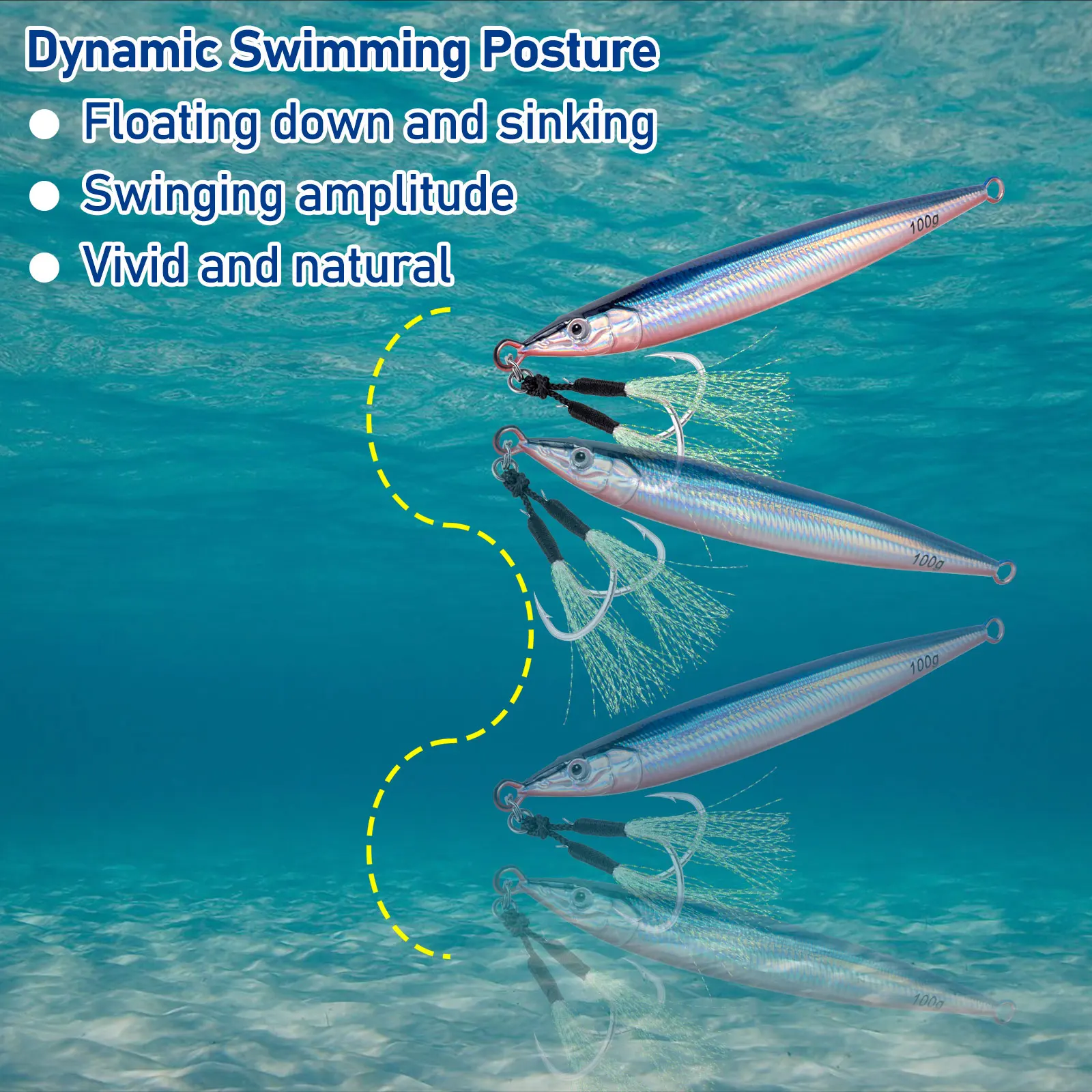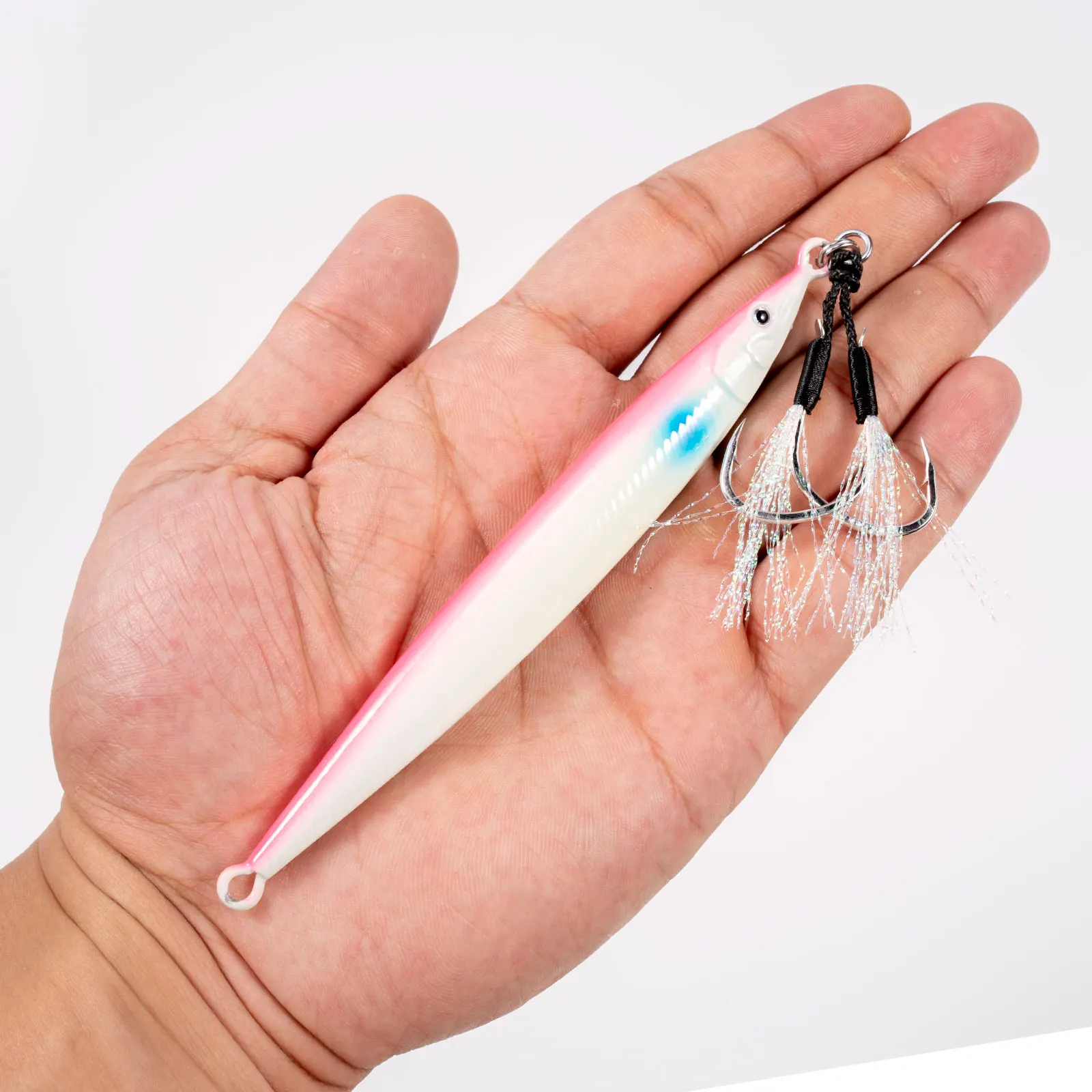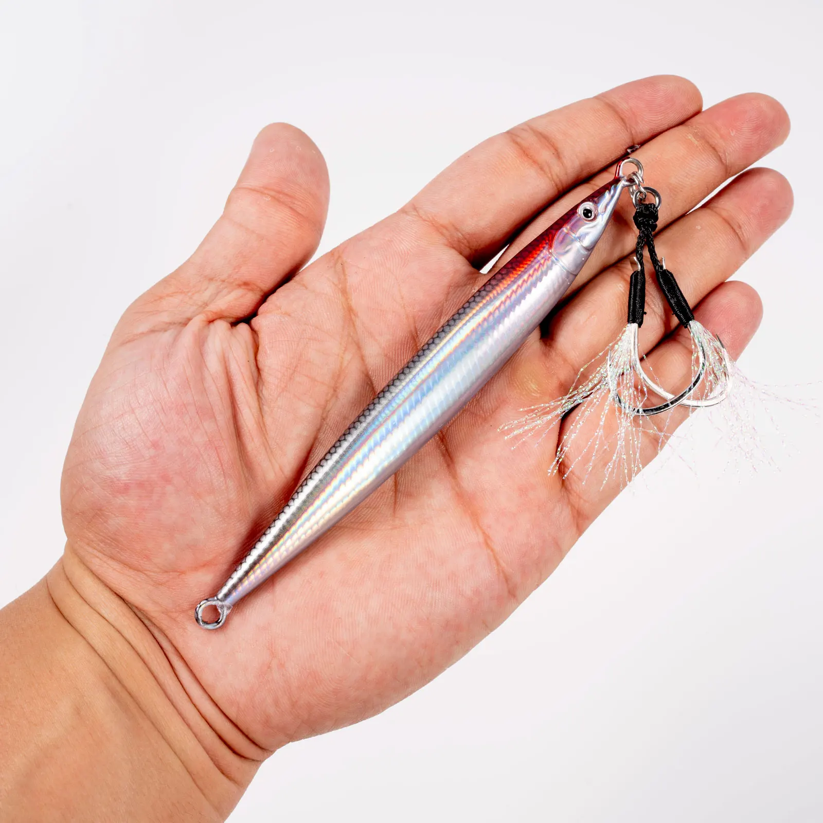 【Vivid Fish-Like Appearance】 3D fish-like eye & fish scale pattern design & fine-craftmanship make this vertical jig a life-like fishing lure, which creates natural temptation to predators.'