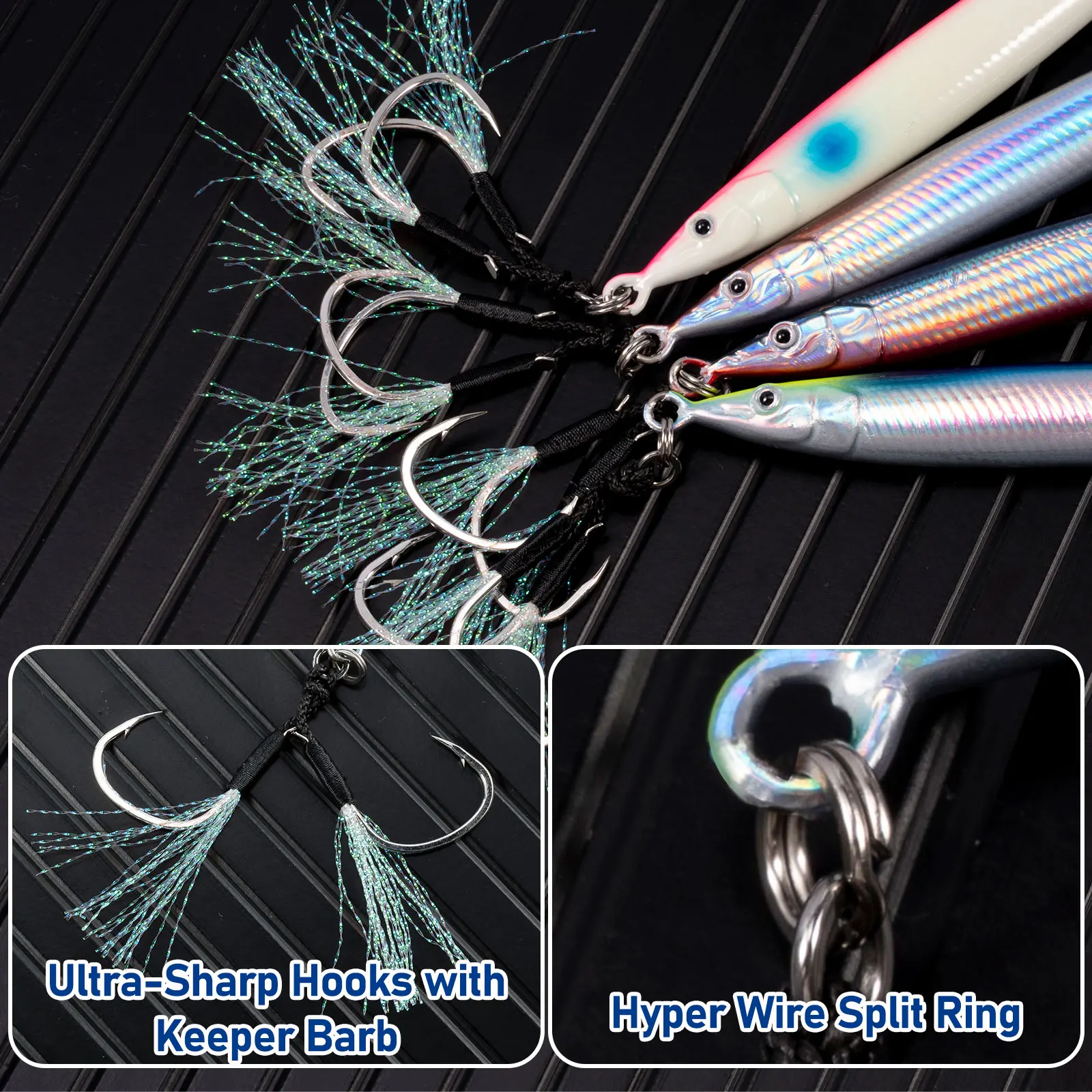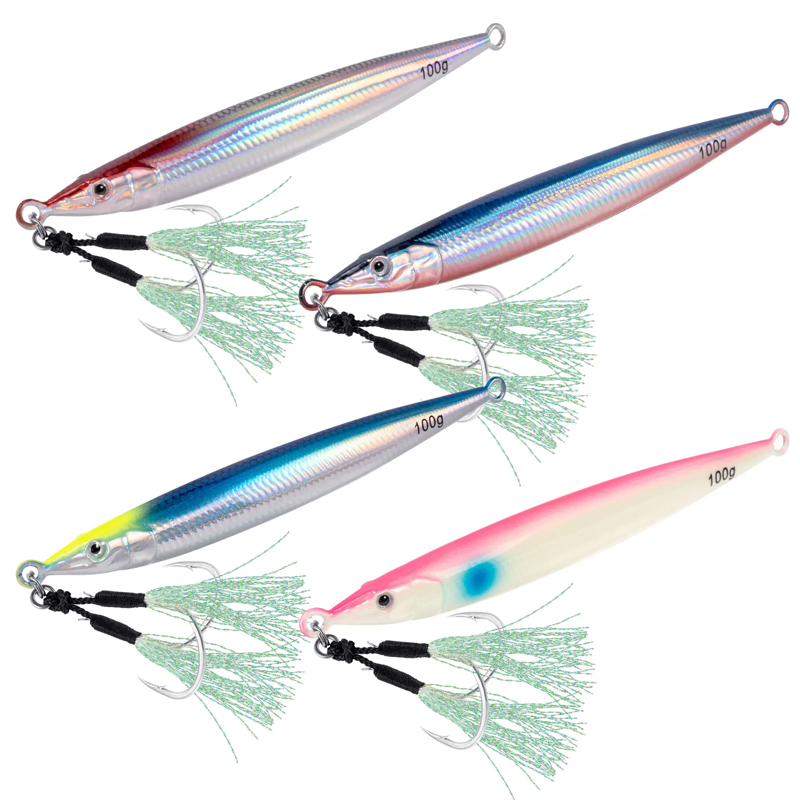 【Excellent Performance】Our saltwater vertical jigs are made of top-quality materials that ensure durability and long-lasting performance, make the lure difficult to break or damaged when attacked by ferocious game fish.