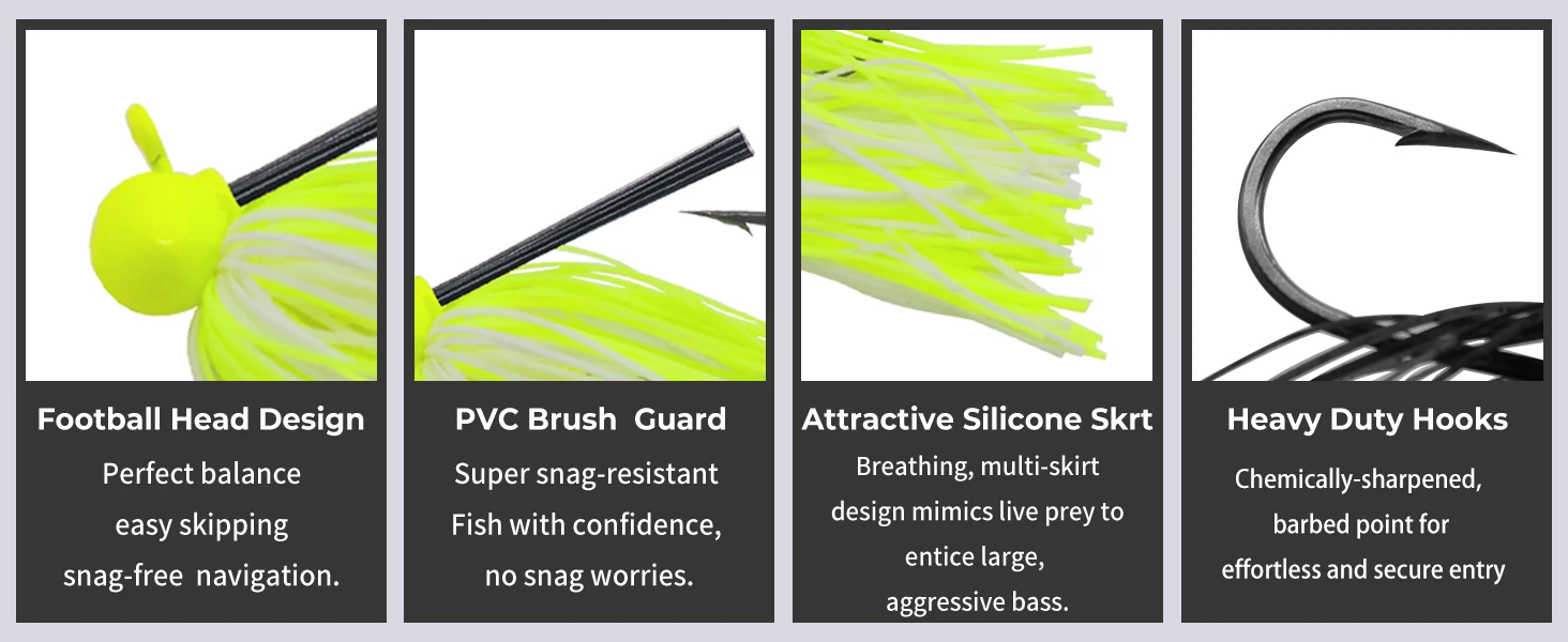 Construcción realista de primera calidad Las faldas de silicona de alta calidad brindan un perfil completo y una acción pulsante que imita peces cebo o cangrejos.Junto con anzuelos afilados y duraderos y fuertes anillos soldados, este señuelo está diseñado para su rendimiento y para aterrizar peces trofeos.