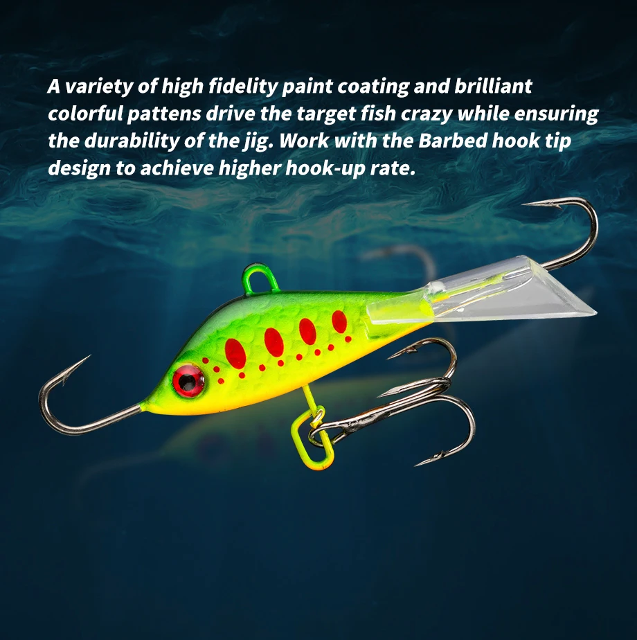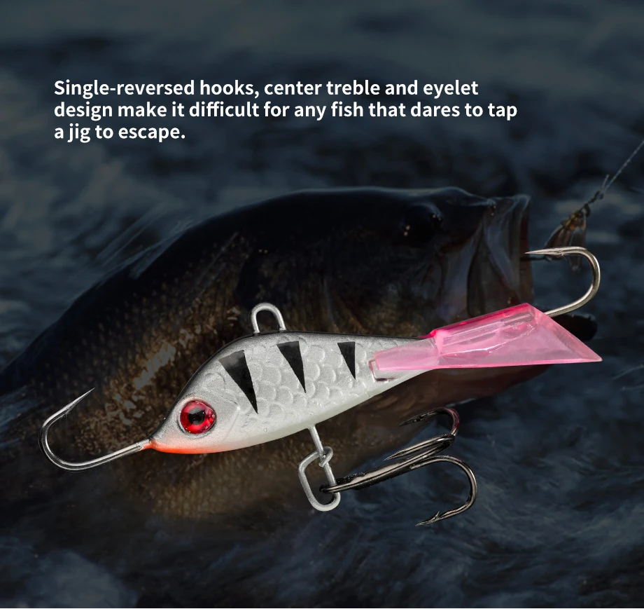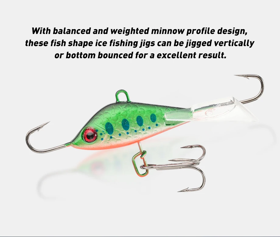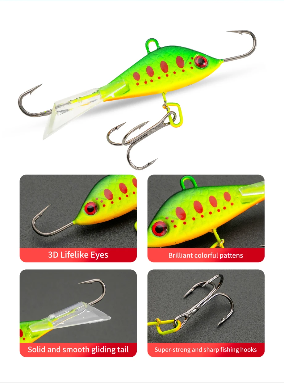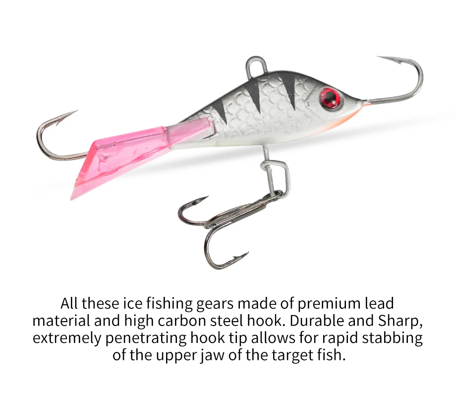 Diseñado específicamente para la pesca con HIELO, este señuelo es una opción ideal para los entusiastas del invierno que buscan lanzar sus líneas en aguas frías.
