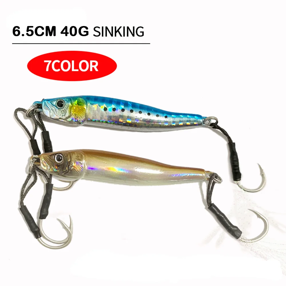 3D Metal Jig hundimiento 6,5 cm 40g Drag Cast pesca en alta mar cebo agua de mar bajo trucha señuelo Isca cebo Artificial Pesca Swimbait gancho