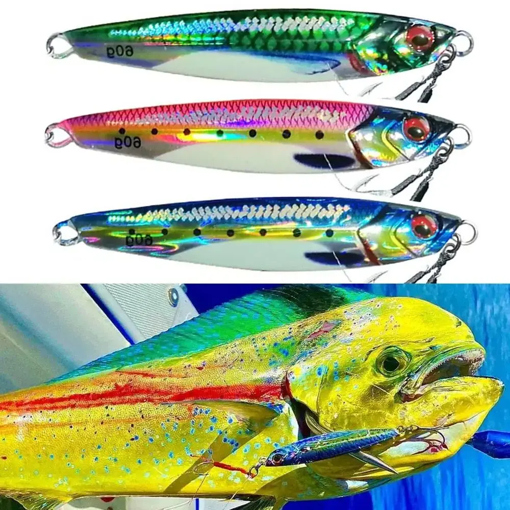 Plantilla de Metal 3D UV de 60G80G, Jigging en la costa, pesca en agua salada, señuelo para trucha, lubina, cuchara, cebo, Jigpara, señuelos de atún para Mahi Wahoo