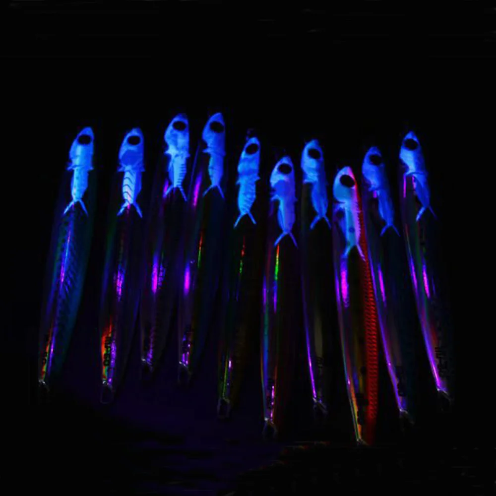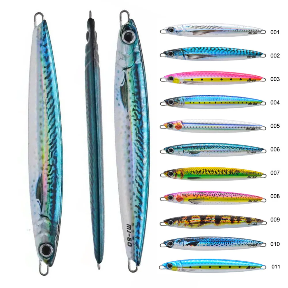 Plantilla de Metal 40g60g80g100g120g150g200g 3D plantilla lenta Shore Jigging Atún señuelo pesca en agua salada Jigpara cebo para Mahi Marlin Wahoo