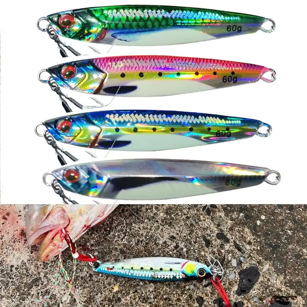 Plantilla de Metal brillante de 60g y 80g, cebo duro para pesca, aparejos de pesca de caballa, Jigging Vertical, Jigpara, señuelos de agua salada para atún