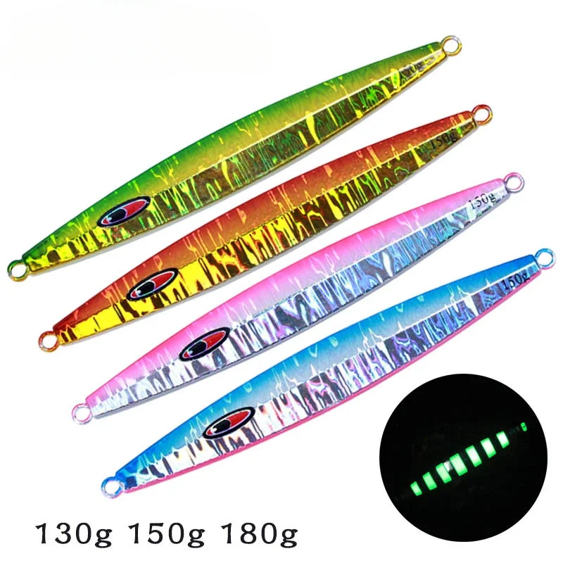 Plantilla de Metal delgada de hundimiento rápido, 130G, 150G, 180G, cuchara de Jigging, costa fundida, lubina, Señuelos de Pesca de agua salada, aparejos de cebo Artificial