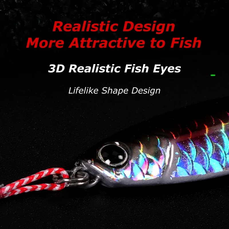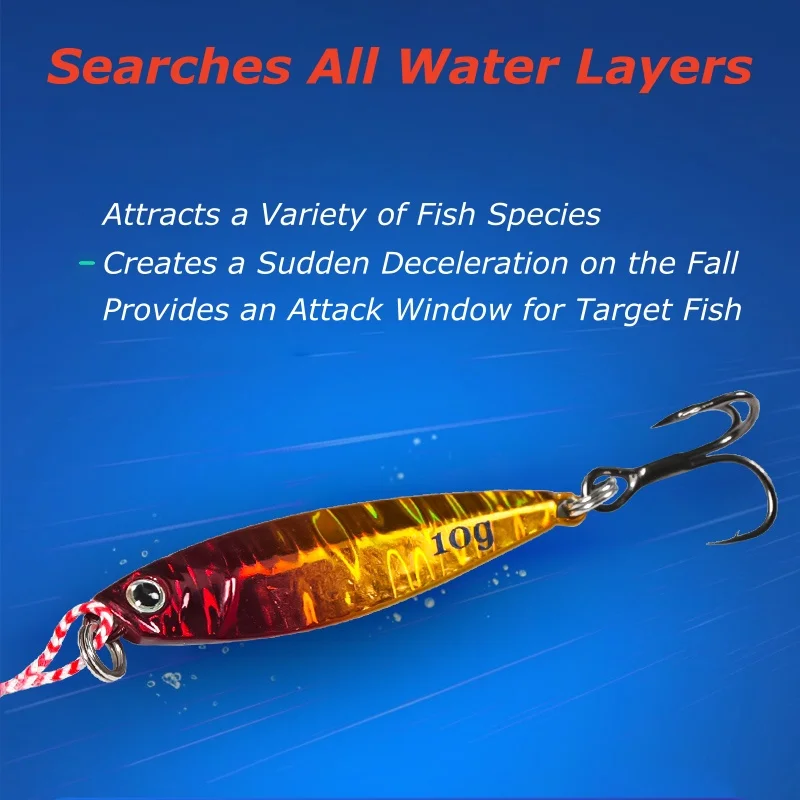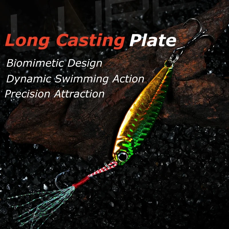 Señuelo metálico de cebo giratorio de fundición larga con pelo atado y anzuelo triple