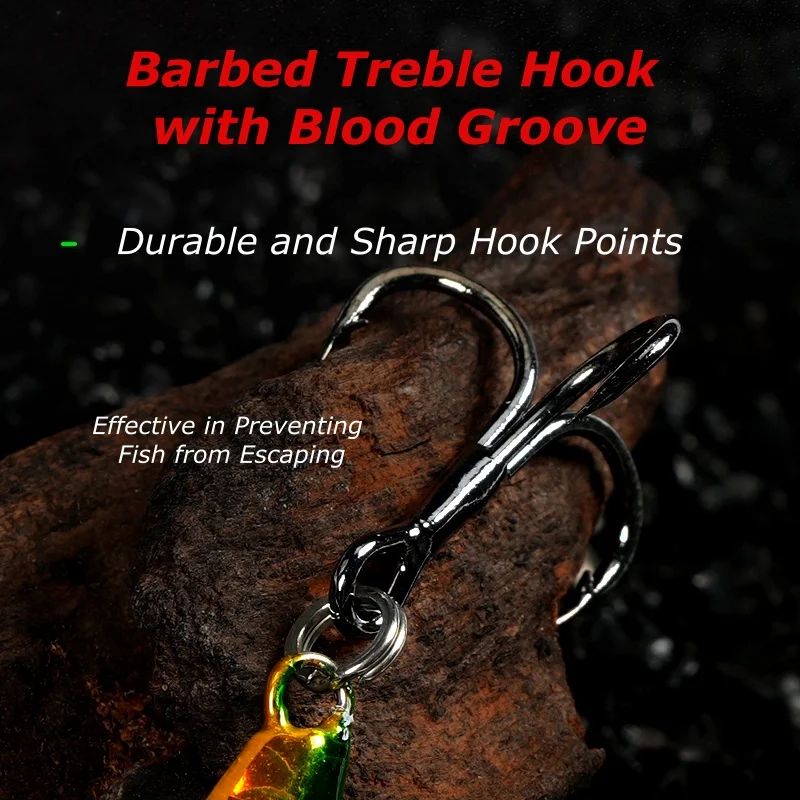3. Ganchos agudos afilados: equipados con ganchos triples de púas para una captura segura.