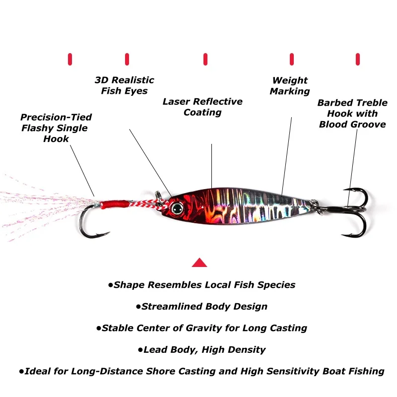 3. Ganchos agudos afilados: equipados con ganchos triples de púas para una captura segura.