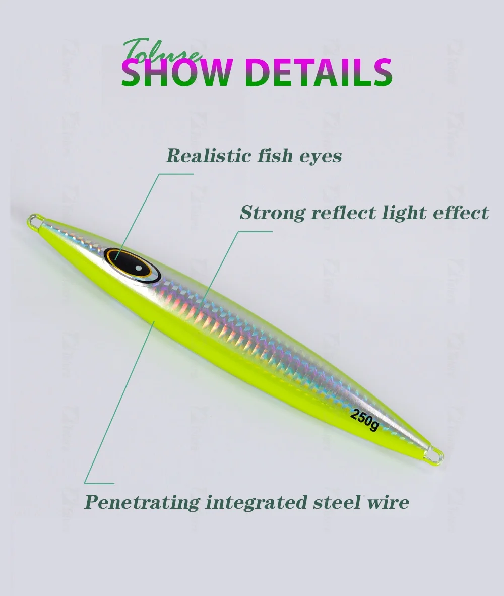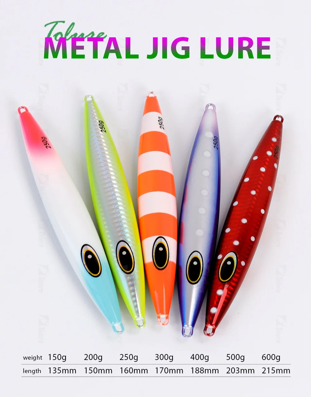 Plantilla de Metal de hundimiento rápido TOLU, modelo 2025 para agua salada, señuelo de pesca de aguas profundas, tamaños 150g-600g, aparejos de pesca con curricán