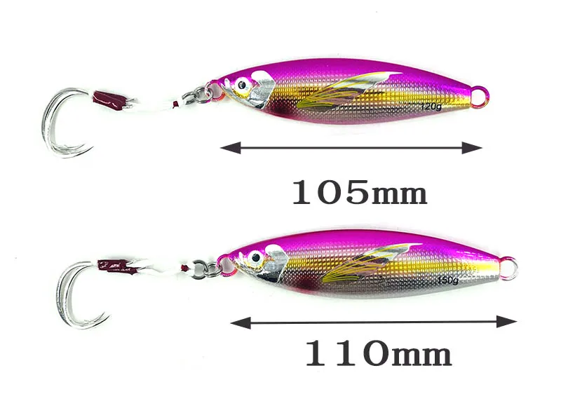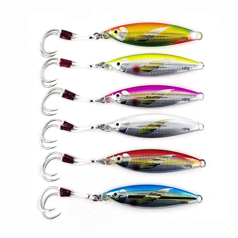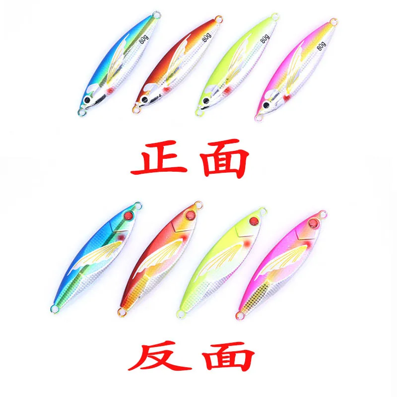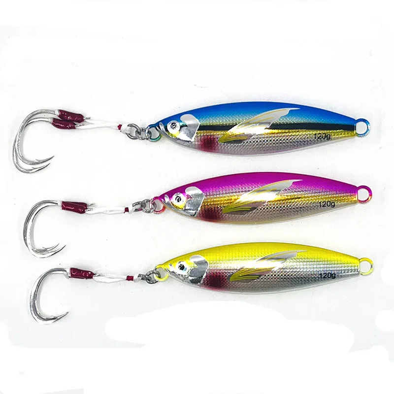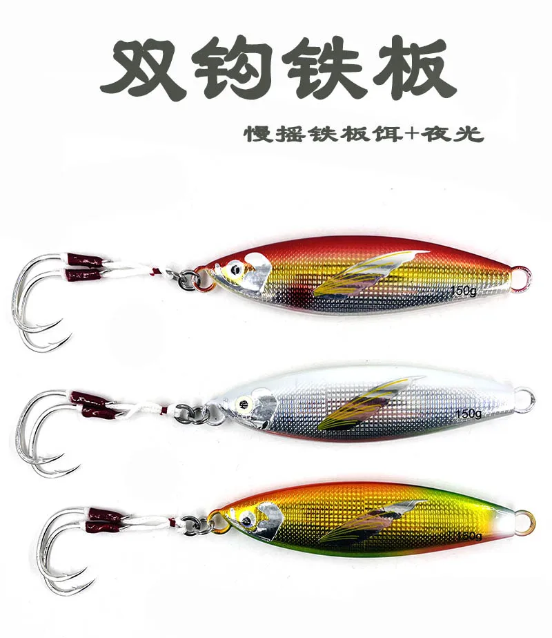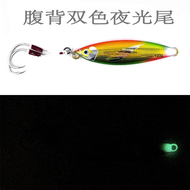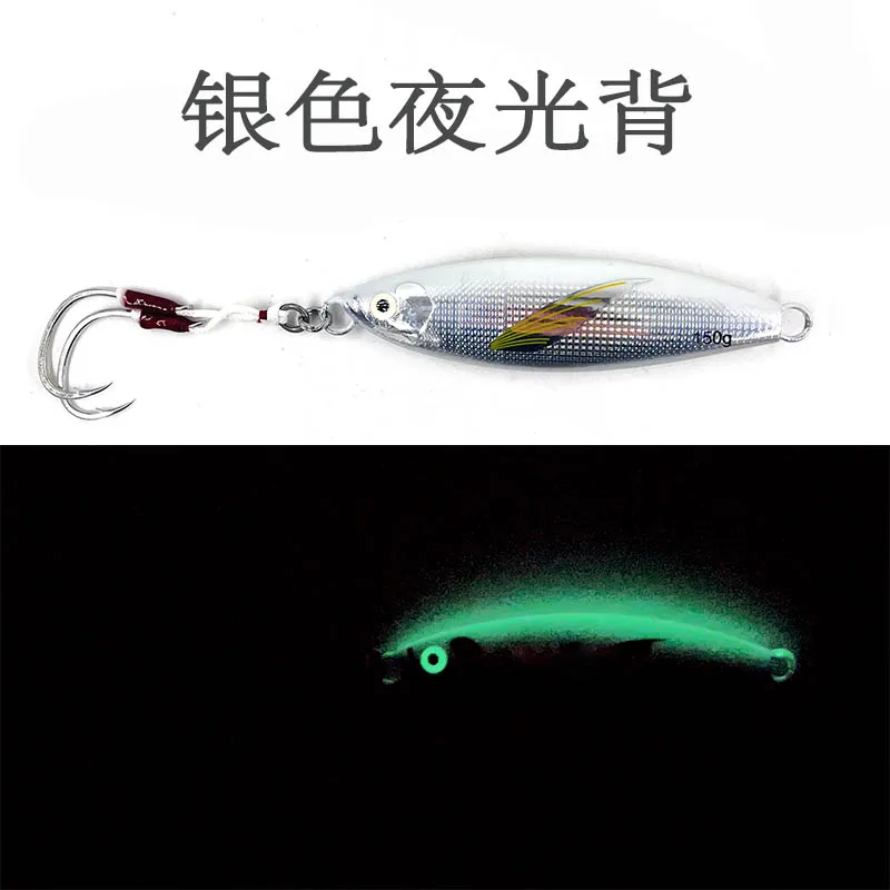 Plantilla de Metal lento, 40g, 60g, 80g, 100g, 120g, 150g, cebo Artificial para peces, cebo luminoso con aleta, pesca en roca en alta mar