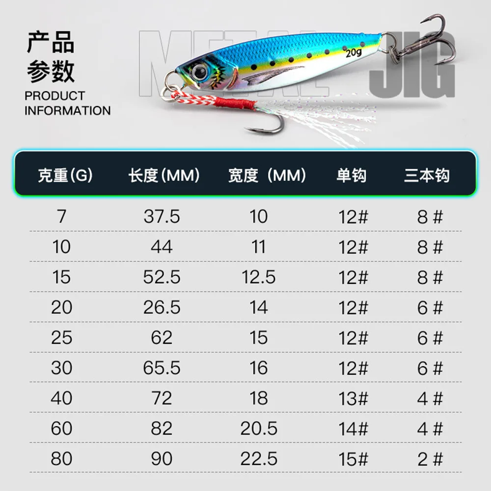 7g-80g Plantilla de Metal de paso lento 3D Shore Jigging pesca de agua salada atún señuelo Jigpara cebo duro para lubina Mahi Marlin Wahoo