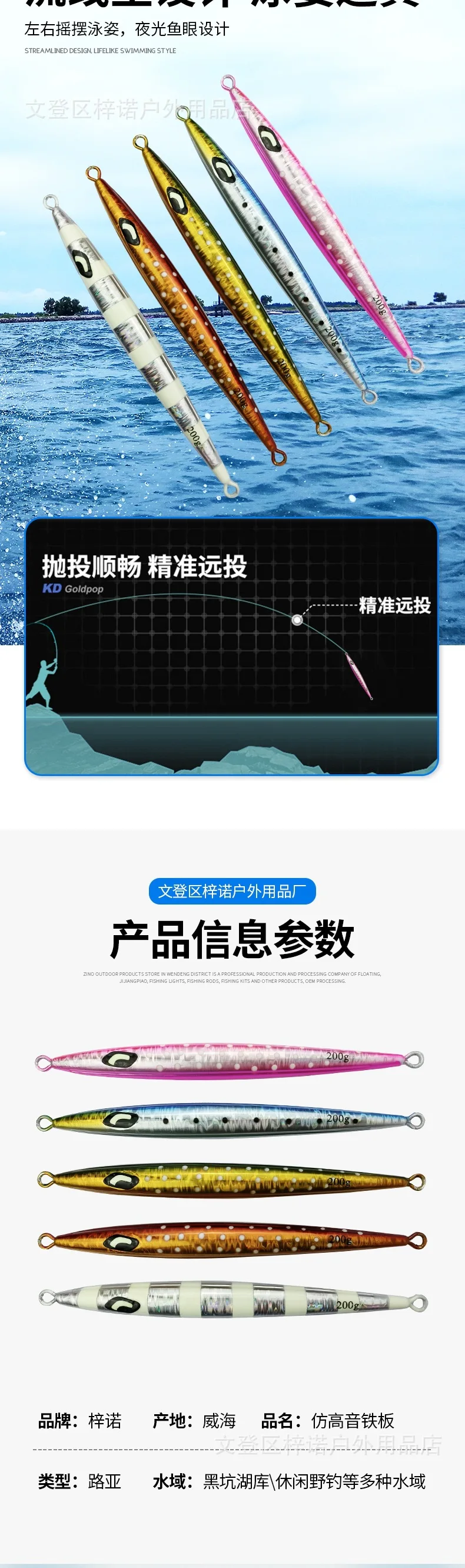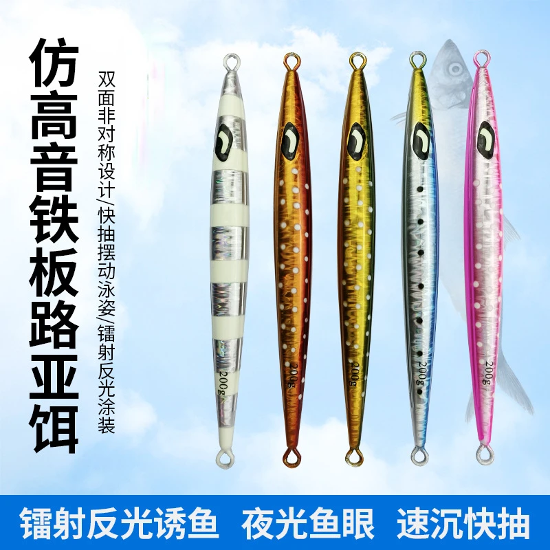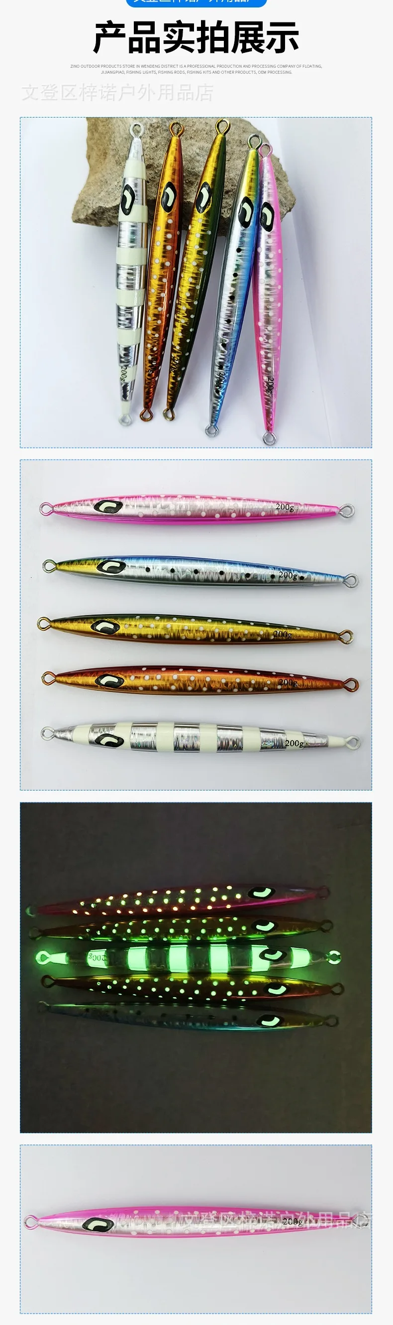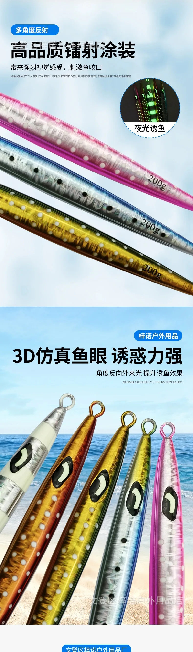 Plantilla de Metal pesado para pesca en agua salada, señuelo de pesca de Metal de fundición larga, brillante, plateado y rojo, 100g, 1 piezas