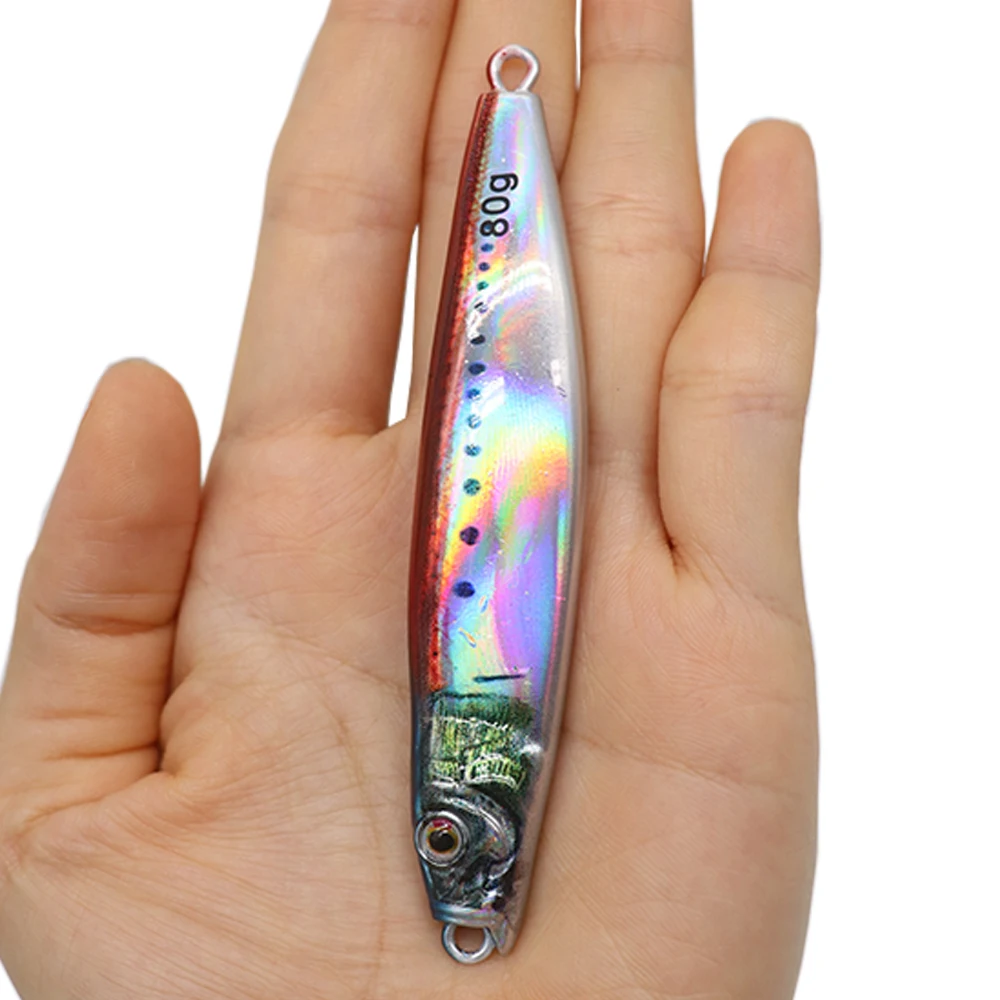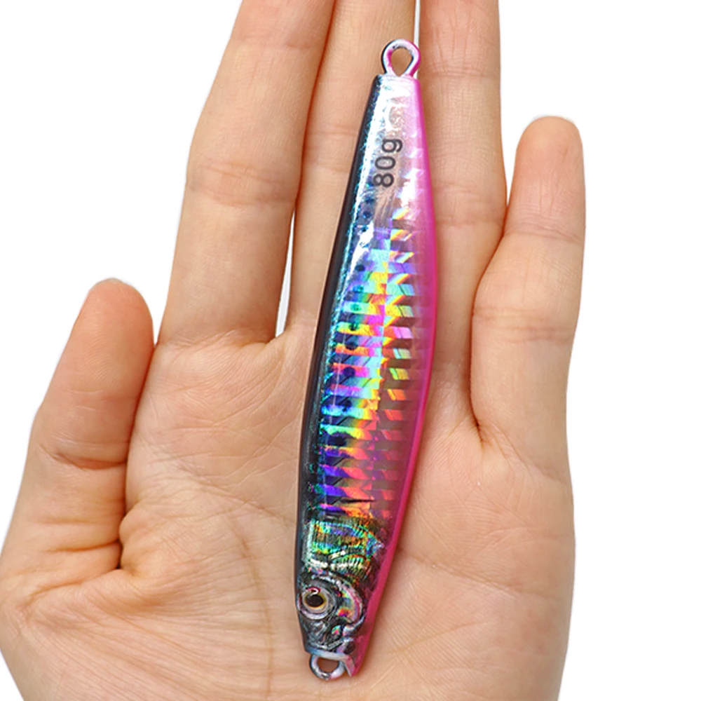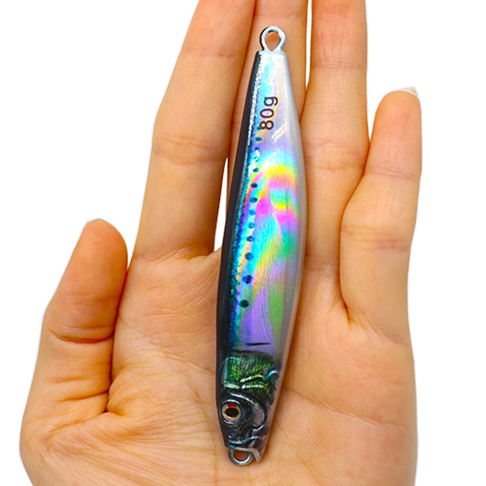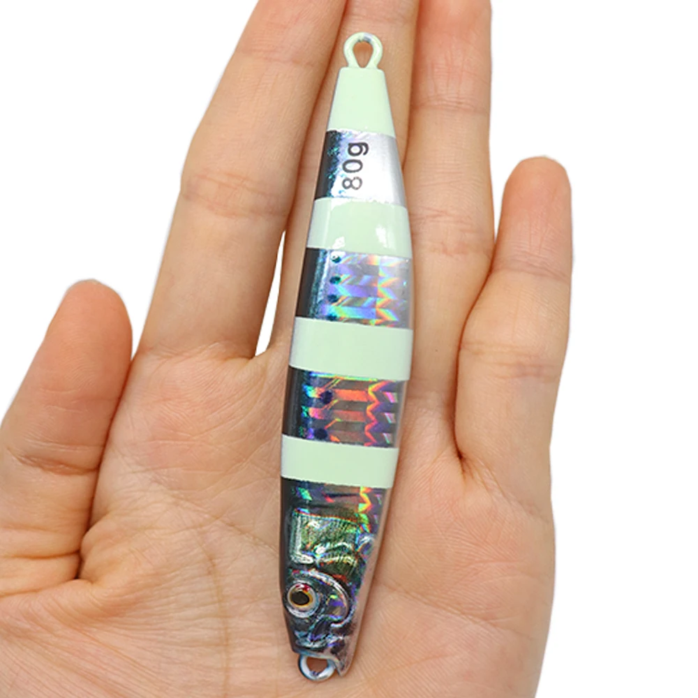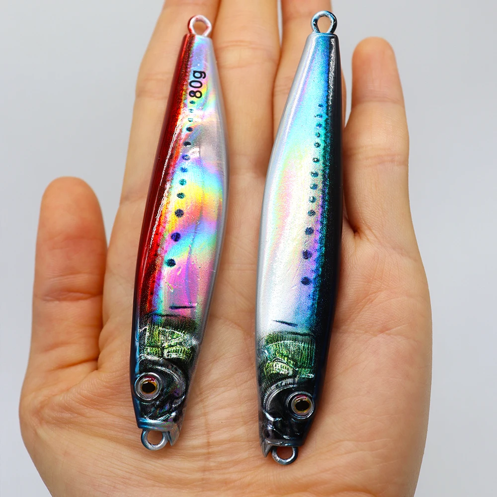 Plantilla de Metal de 60g y 80g para pesca en el mar, impresión 3D, cebo para lubina y pescado, aparejos de trucha, caravanas de arrastre lento fundidas, señuelo de agua salada de atún