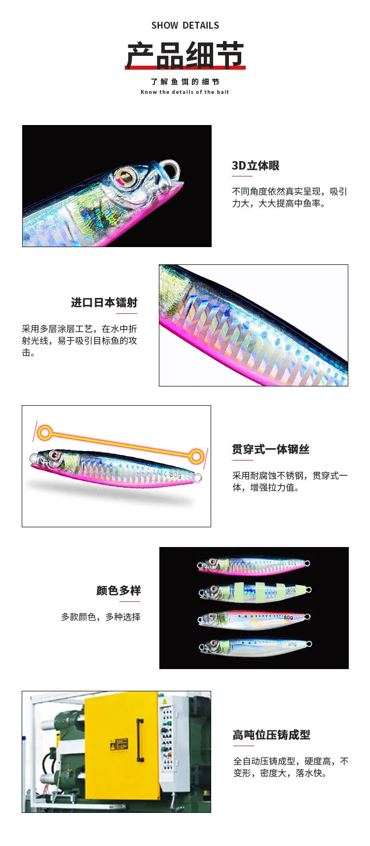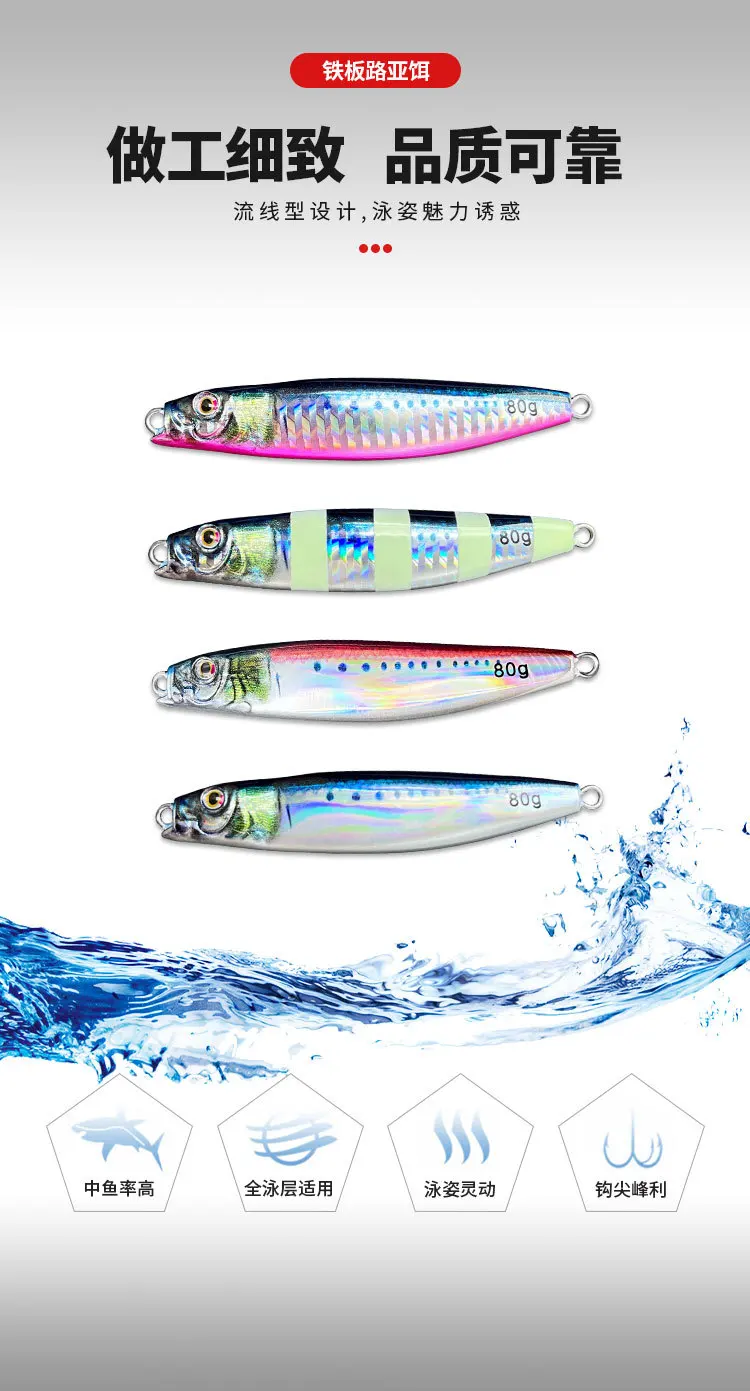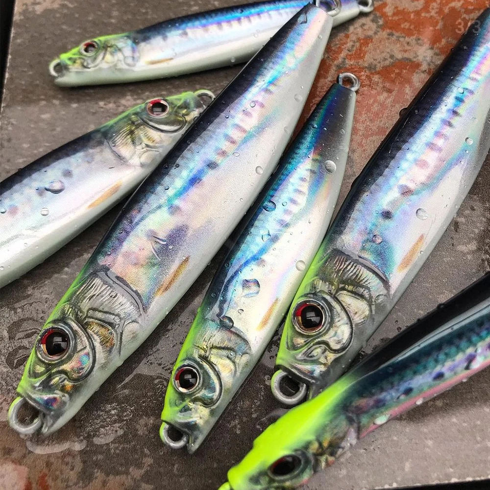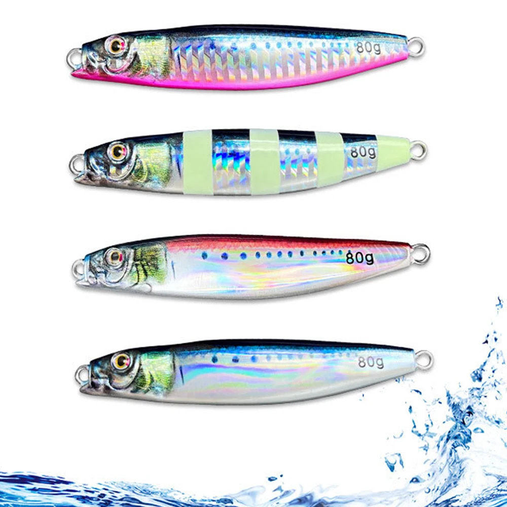 Plantilla de Metal de 60g y 80g para pesca en el mar, impresión 3D, cebo para lubina y pescado, aparejos de trucha, caravanas de arrastre lento fundidas, señuelo de agua salada de atún